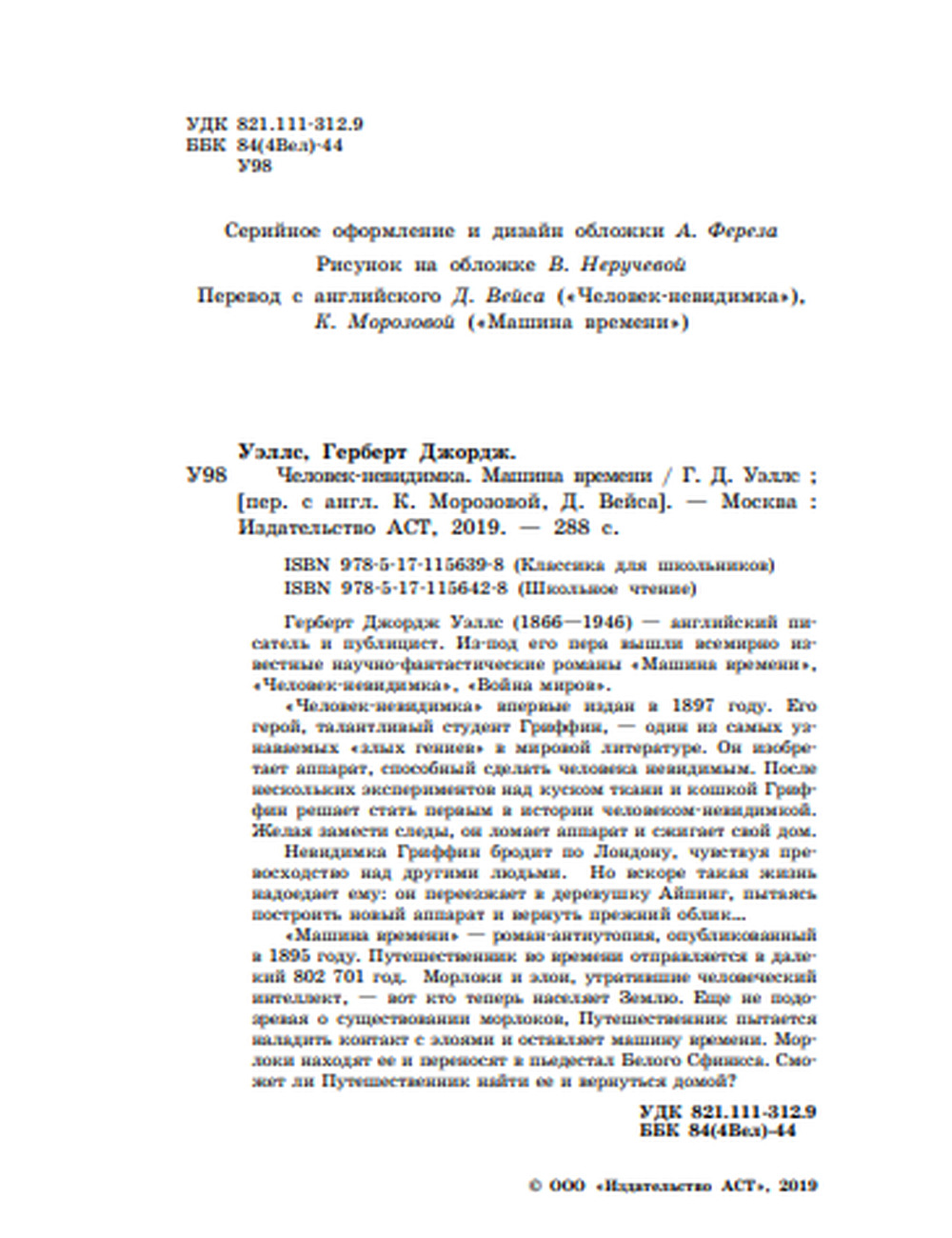 «Человек-невидимка» впервые издан в 1897 году. Его герой, талантливый студент Гриффин, один из самых узнаваемых «злых гениев» в мировой литературе. Он изобретает аппарат, способный сделать человека невидимым. После нескольких экспериментов над куском ткани и кошкой, Гриффин решает стать первым в истории Человеком-невидимкой. Желая замести следы, он ломает аппарат и сжигает свой дом.