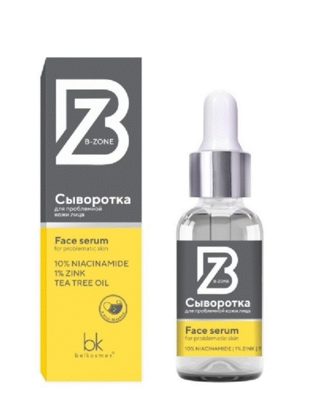 Активная сыворотка разработана для уменьшения несовершенств проблемной кожи. В ее остав входят цинк и масло чайного дерева, которые оказывают антисептическое и противовоспалительное действие, ограничивая размножения бактерий, вызывающих акне. Ниацинамид уменьшает количество воспалений и выработку кожного секрета, укрепляет защитный барьер, улучшает упругость и эластичность кожи. Применение: Нанести похлопывающими движениями на очищенную кожу лица. Подходит для ежедневного применения.