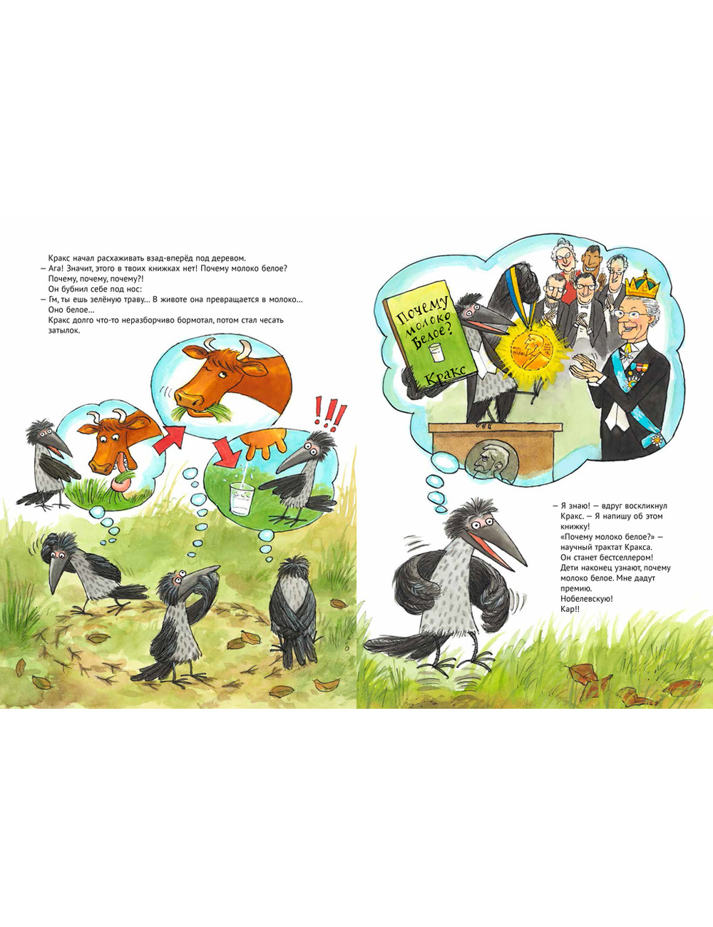 В этой книге Мама Му и Кракс спорят о том, должна ли корова уметь читать, и пытаются выяснить, почему трава зелёная, а молоко белое.
