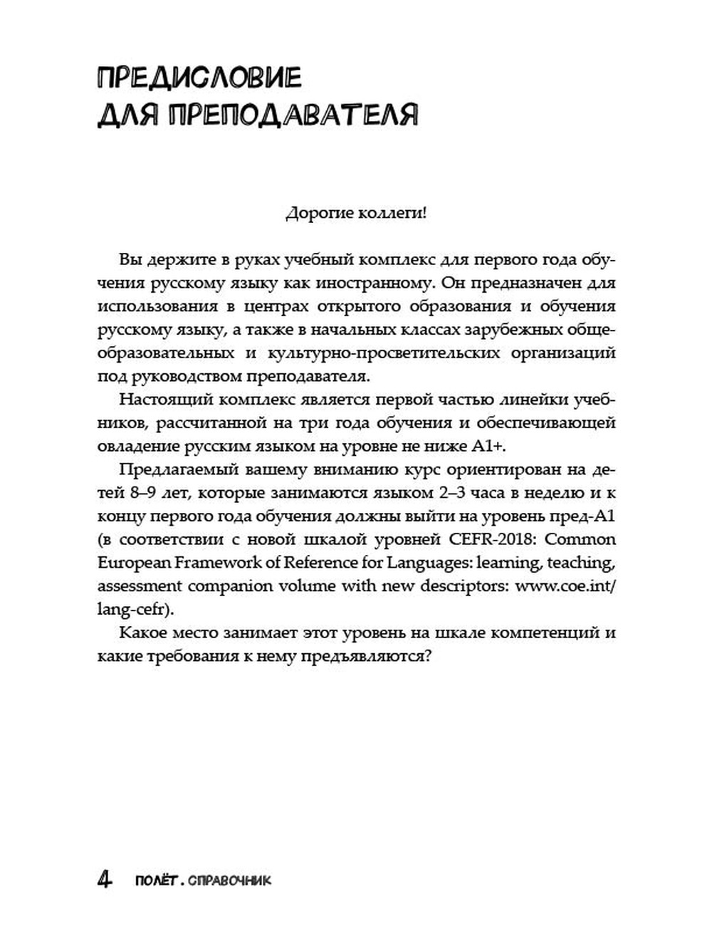 В комплект для каждого года обучения входят учебное пособие с аудиоприложением и интерактивными заданиями для мобильного телефона (доступ по QR-кодам), рабочая тетрадь и справочник для преподавателя. Для первого года обучения имеется также рабочая тетрадь по письму.
