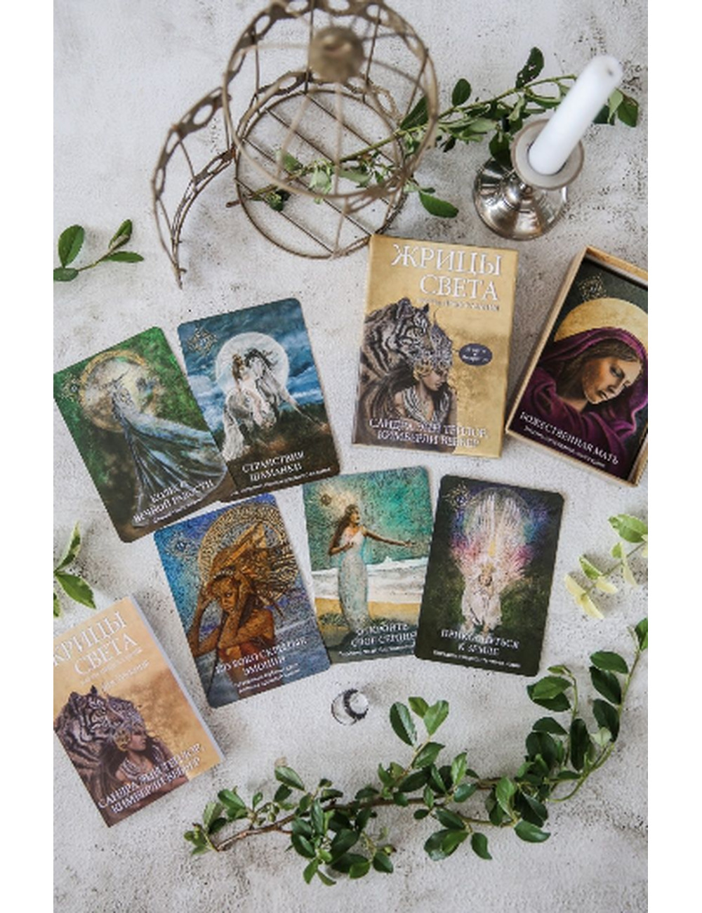 Этот набор из 53 карт является совместной работой двух потрясающих целительниц и духовных наставниц. Сандра Энн Тейлор раскрывает присутствие в нашей жизни универсальной энергии посредством потрясающих изображений живых существ творений духовного мира, Божественных женских архетипов и таинственных геометрических форм. А известная художница Кимберли Веббер словно переводит Божественную энергию на материальный язык с помощью замысловатых рисунков в стиле современного магического реализма, который берет свои корни в древнем мире как она сама его определяет, используя в своих работах уникальную технику добавления к обычным красителям редких камней-самоцветов, кристаллов и драгоценных металлов. Представленные на картах образы и послания можно применять не только для получения предсказаний, но и в качестве инструмента для изменения своего внутреннего мира и его внешних проявлений в вашей жизни и окружающей реальности.