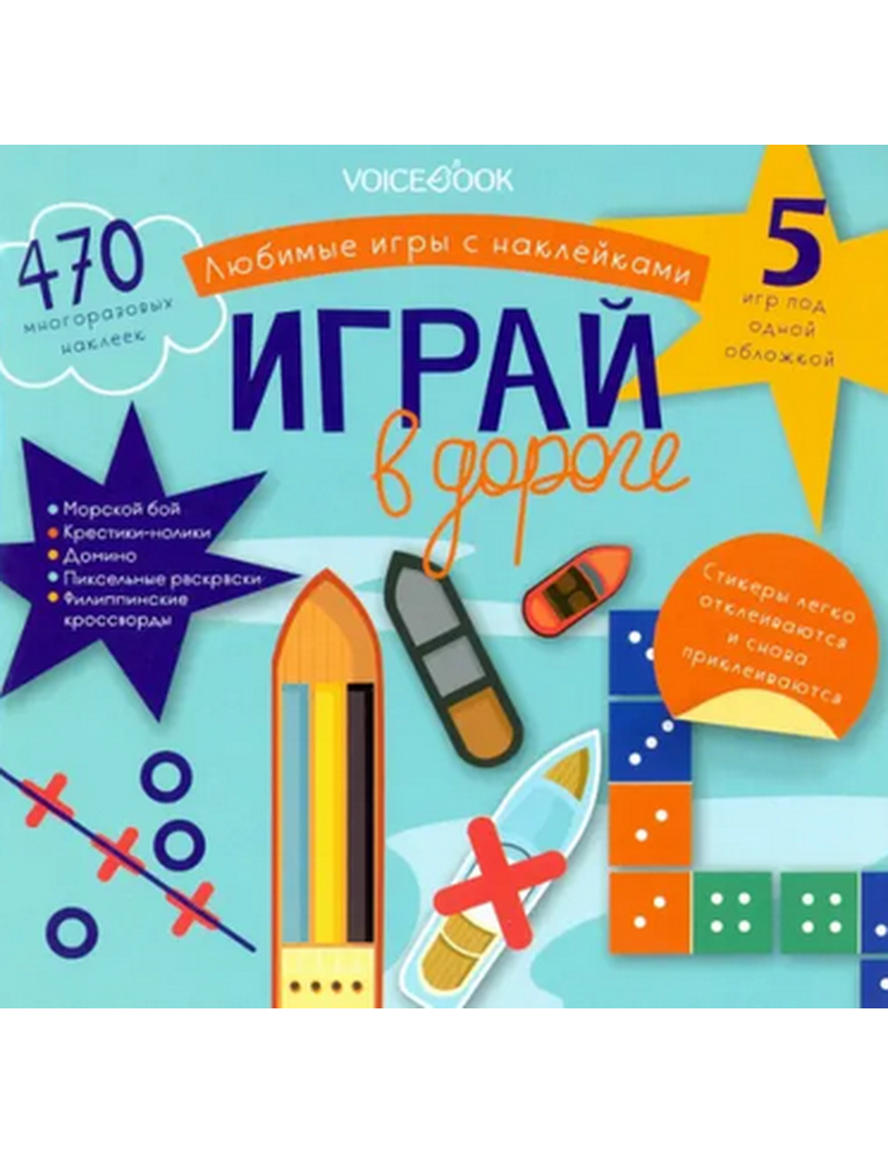 Под одной обложкой мы собрали 5 увлекательных развивающих игр, в которые можно играть одному или шумной компанией. Ручка и бумага не нужны — к каждой игре прилагается набор многоразовых наклеек!