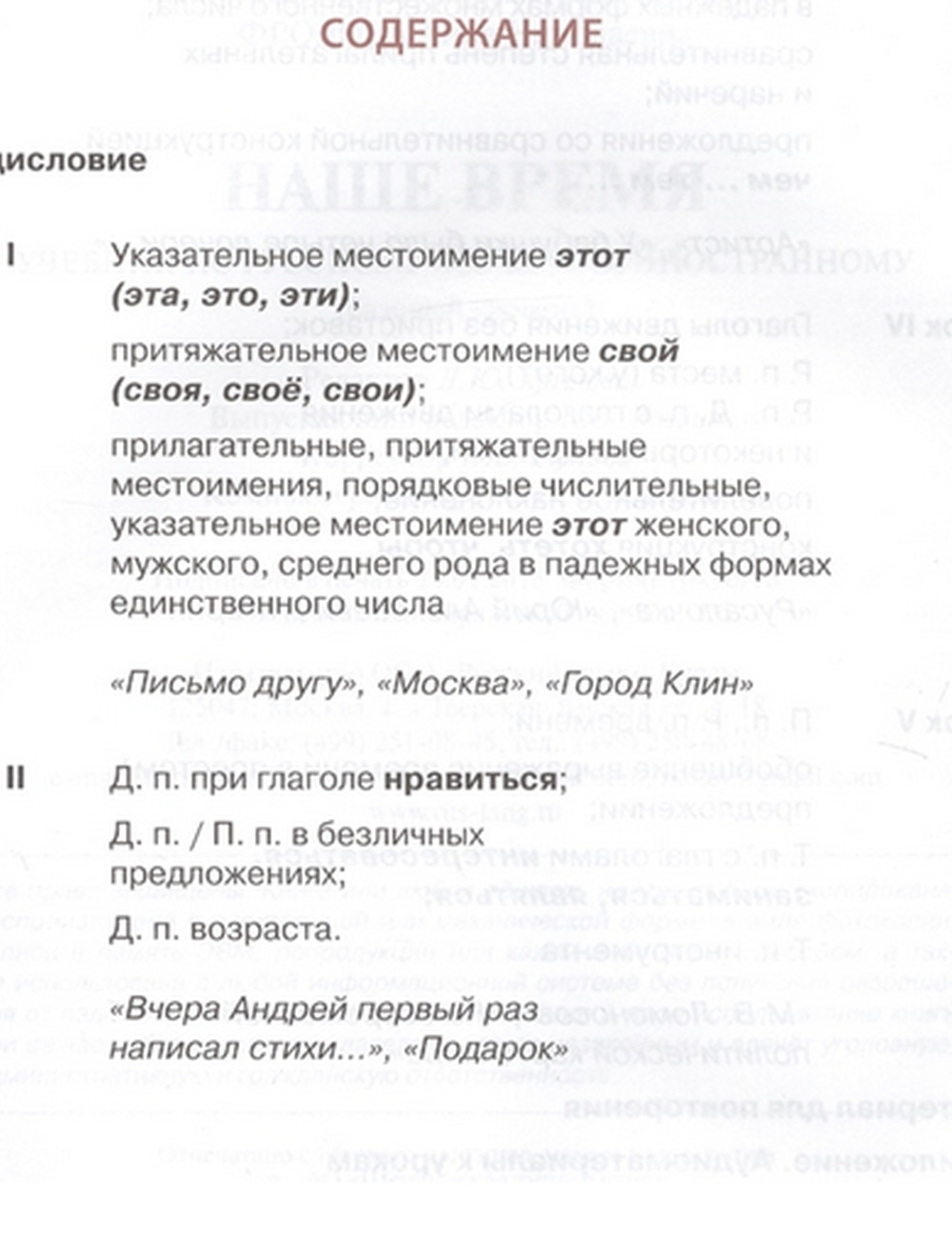 Учебник адресован иностранцам, овладевающим базовыми знаниями по русскому языку. Он рассчитан на 130-150 аудиторных часов и соответствует требованиям «Образовательной программы по русскому языку как иностранному» (2001), рекомендованной УМО вузов России. Учебник состоит из 5 уроков, включающих работу над грамматикой и лексикой, тексты для чтения, аудитивные материалы, материалы для развития навыков и умений говорения и письма. Подача материала предполагает взаимосвязанное обучение аспектам языка и видам речевой деятельности и формирование у иностранных учащихся коммуникативной компетенции. Прилагается CD.