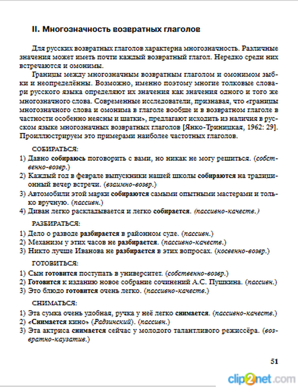 В пособии рассматриваются наиболее представительные семантические разряды возвратных глаголов — одной из трудных тем для изучающих русский язык как иностранный. Книга состоит из двух частей. Теоретическая часть будет полезна в первую очередь преподавателю. Материал здесь обобщён в виде систематизирующих таблиц. В практической представлены упражнения, направленные на отработку употребления возвратных глаголов в речи. Описание каждого семантического разряда глаголов в первой части дополняется тренировочными упражнениями во второй. Глаголы каждого разряда анализируются по семантическим и синтаксическим признакам, демонстрируется вариантность синонимических средств. Особое внимание уделяется анализу трудностей, с которыми сталкивается иностранный учащийся. Пособие содержит большой материал для развития монологической и диалогической речи: диалоги, упражнения, ситуации, тексты. Книга предназначена для работы на продвинутом этапе обучения как под руководством преподавателя, так и самостоятельно.