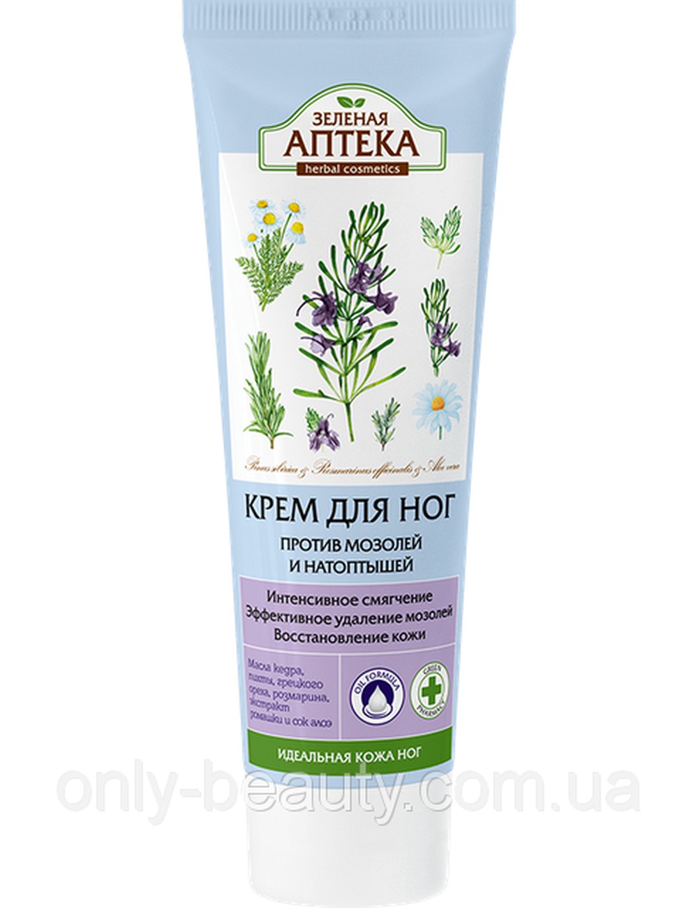 Крем улучшает состояние чрезмерно сухой, загрубевшей кожи на стопах, склонной к образованию мозолей.