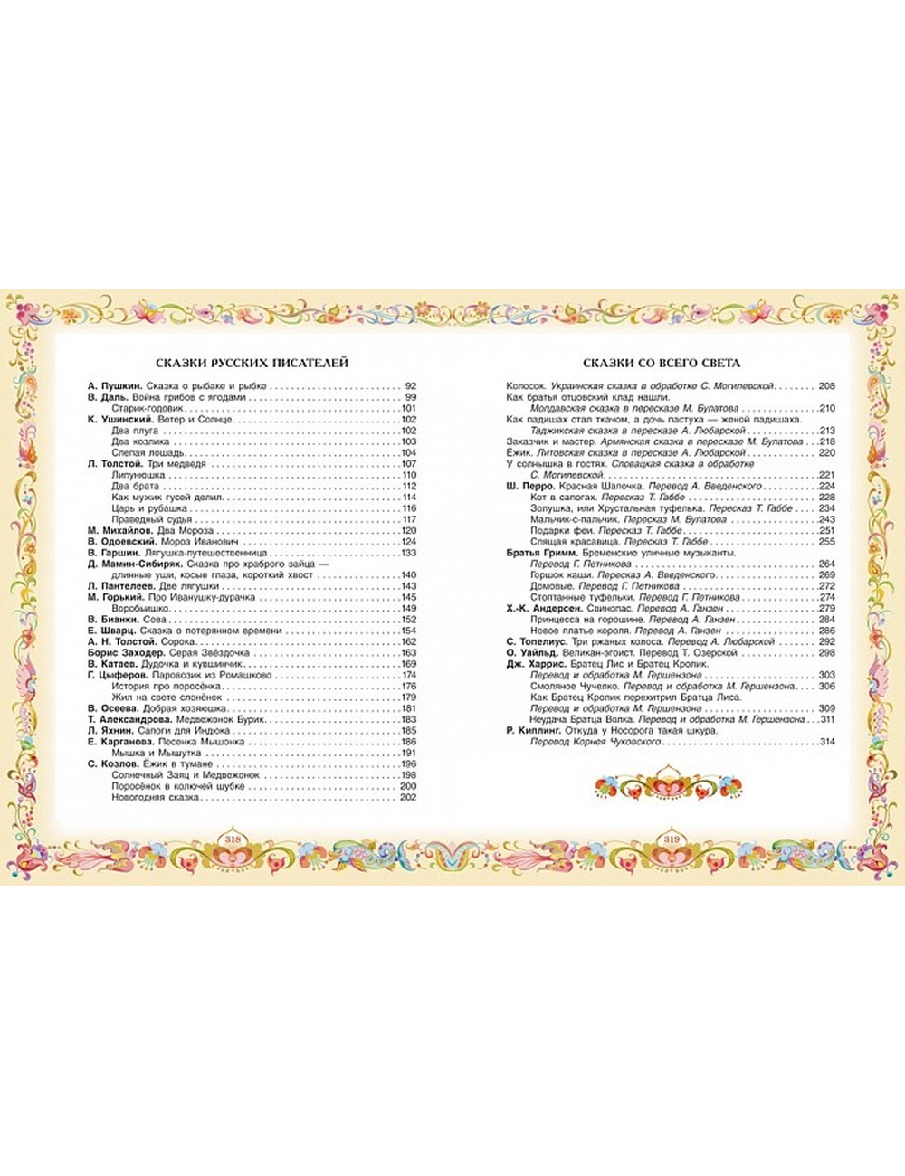 В сборник вошло 100 лучших сказок. Это и русские народные сказки, и украинские, армянские, словацкие, таджикские, и сказки русских писателей: А.С. Пушкина, Л.Н. Толстого, В.М. Гаршина, В.Ф. Одоевского, Л. Пантелеева, Бориса Заходера, В.П. Катаева, Г.М. Цыферова, С.Г. Козлова, и, конечно, сказки знаменитых зарубежных сказочников: Шарля Перро, братьев Гримм, Х.-К. Андерсена. Здесь собраны сказки на любой вкус и для малышей, и для тех, кто постарше, и нет сомнений, что эта книга будет радовать вас долгие годы.