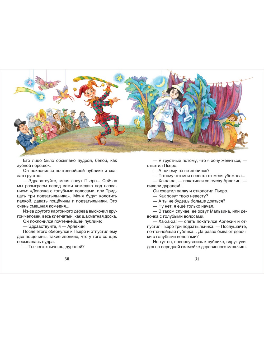 Эта замечательная история о веселых и опасных приключениях озорного и простодушного деревянного человечка по имени Буратино написана почти 80 лет назад. С тех пор не одно поколение детей с удовольствием читает о том, как на пути к разгадке тайны золотого ключика Буратино проходит через трудные испытания, побеждает врагов и обретает верных друзей
