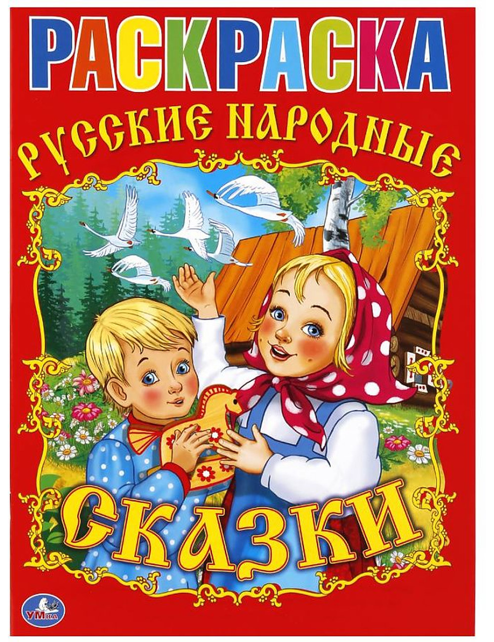Красочная раскраска подарит веселые часы и минуты Вашему ребенку. С ней он сможет не только познакомиться с русскими сказками и героями, но и развить необходимые для своего возраста навыки — мелкую моторику, логику, память. Раскраска изготовлена из отличной бумаги и содержит качественные иллюстрации.