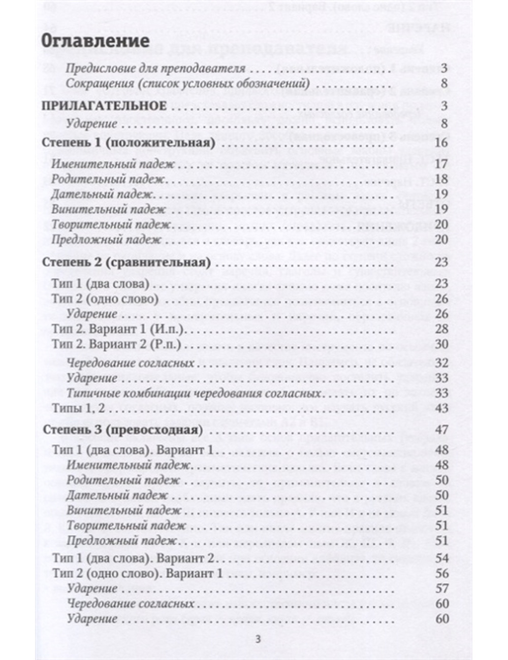 Пособие предназначено для изучающих русский язык как иностранный на уровнях А1–В1. В нём предлагается большое количество разнообразных упражнений, в том числе на усвоение предложно-падежной системы, а также тесты, справочные таблицы и ключи. Объясняются особенности ударения прилагательных и наречий, законы чередования согласных в сравнительной степени и простой превосходной степени.