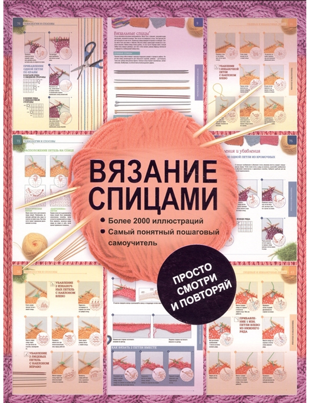 Вязание спицами – один из самых распространенных видов рукоделия. Научиться вязать спицами проще простого, если вы держите в руках эту книгу! Пошаговые иллюстрации каждого движения вязальщицы, схемы и подробные описания станут незаменимыми помощниками в обучении. В книге вы найдете все основы техники вязания спицами: от набора петель, вязания узоров из лицевых и изнаночных петель, выполнение узоров «кос», убавления и прибавления, а также закрепления петель. Настольная книга по вязанию спицами станет незаменимой для начинающих рукодельниц!