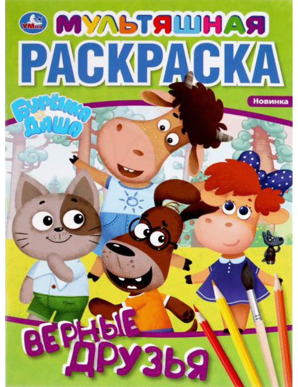 Мультяшная раскраска «Бурёнка Даша. Верные друзья» ТМ «УМка» обязательно понравится малышу:
