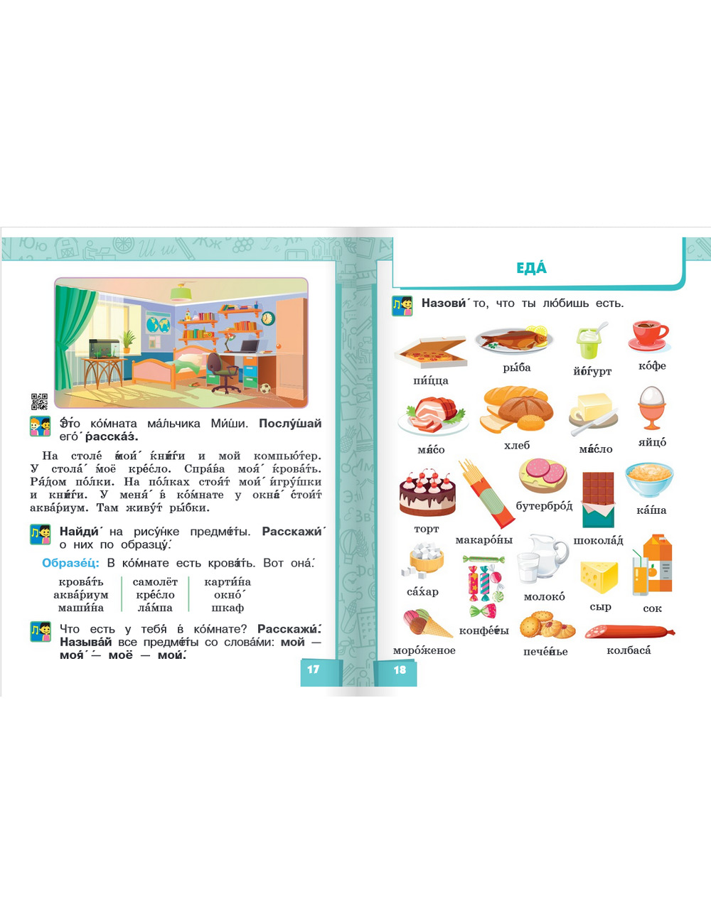 К текстам, содержащим сложную для воспроизведения новую лексику, прилагаются аудиозаписи, выполненные профессиональными дикторами. Прослушать их можно, сосканировав размещённые на страницах учебника QR-коды с помощью установленного на смартфон или планшет приложения, которое можно загрузить по ссылке: http://russlo-edu.ru/app/RS_AR.apk.