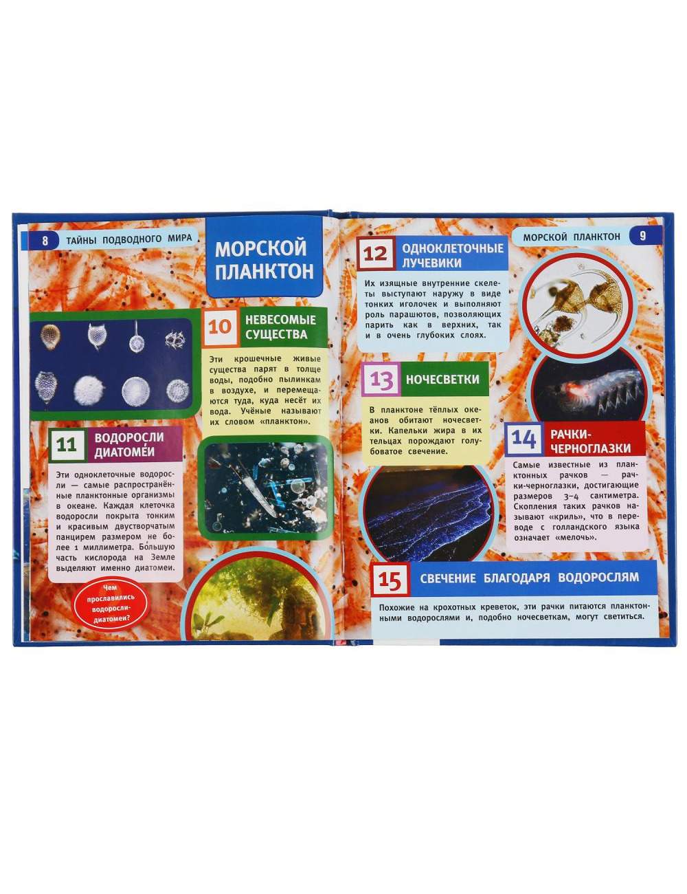 Эта занимательная энциклопедия познакомит юного читателя с особенностями жизни подводных обитателей и тайнами, скрывающимися под толщами вод мирового океана. Яркие картинки, зрелищные фото и удивительные факты увлекут ребёнка и помогут ему быстро, эффективно и с удовольствием усвоить новую информацию. Благодаря компактным размерам энциклопедию удобно брать с собой в поездки.
