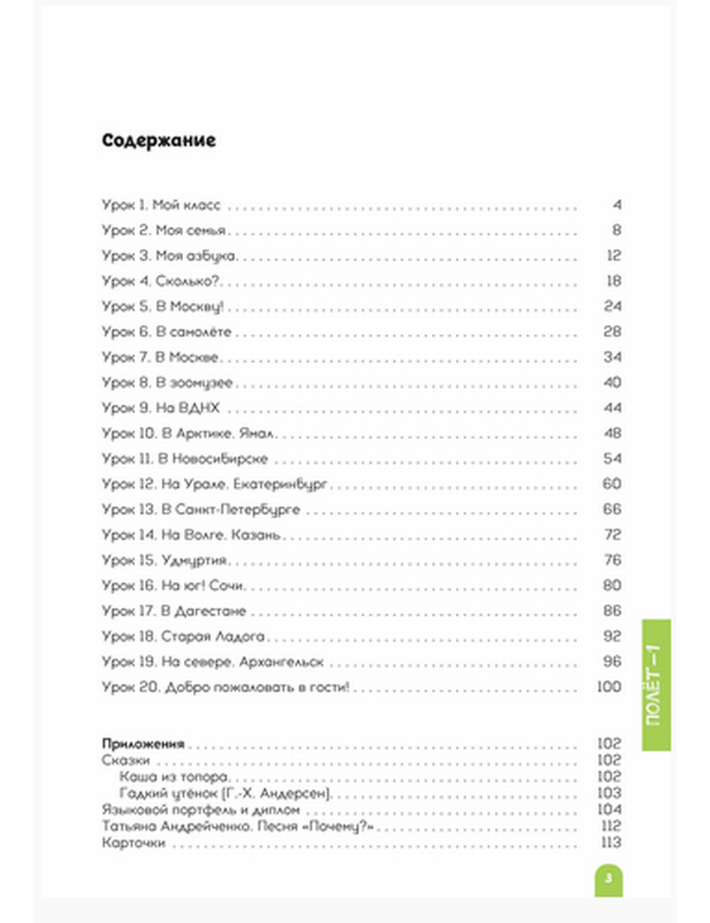 Первая из трёх частей УМК предназначена для учащихся 8–9 лет, начинающих изучать русский язык как иностранный. Использует приёмы CLIL и естественный порядок освоения языка. Рассчитана на 60–70 часов обучения в классе и достижение коммуникативной компетенции на уровне пред-А1.