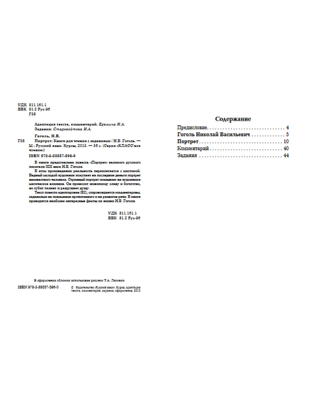 Текст повести адаптирован (В2), сопровождается комментарием, заданиями на понимание прочитанного и на развитие речи. В книге приводятся наиболее интересные факты из жизни Н.В. Гоголя.