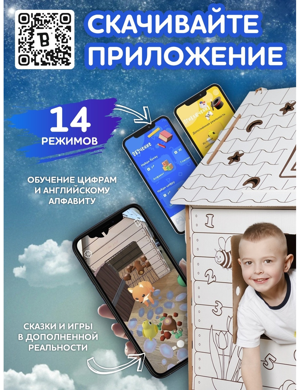 Погрузитесь в мир дополненной реальности (AR)! В приложении реализовано 14, обучающих алфавиту и цифрам, программ; сказки и игры в дополненной реальности, и много других полезных функций. Теперь Вы сможете смотреть сказки, сюжет которых происходит прямо в вашей комнате!