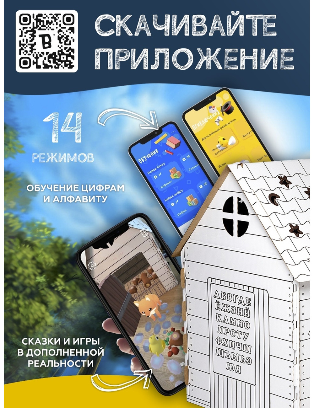 Погрузитесь в мир дополненной реальности (AR)! В приложении реализовано 14, обучающих алфавиту и цифрам, программ; сказки и игры в дополненной реальности, и много других полезных функций. Теперь Вы сможете смотреть сказки, сюжет которых происходит прямо в вашей комнате!