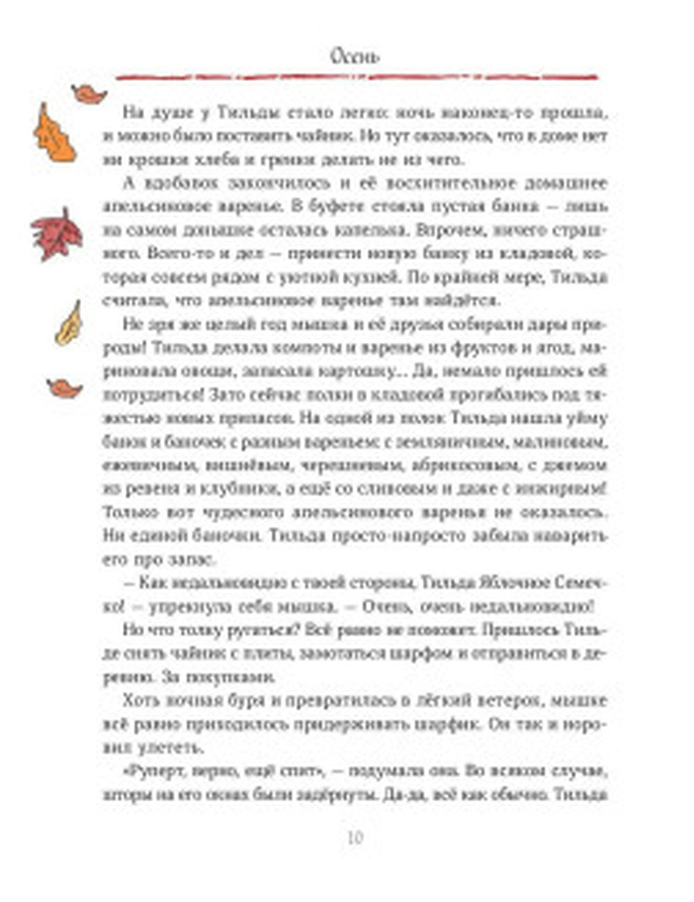 Книга делится на небольшие главы, удобные для чтения на ночь или для самостоятельного чтения для тех, кто стал настоящим читателем. А главы объединены по временам года, так что наблюдать за героями, их жизнью и приключениями можно целый год и все сезоны.