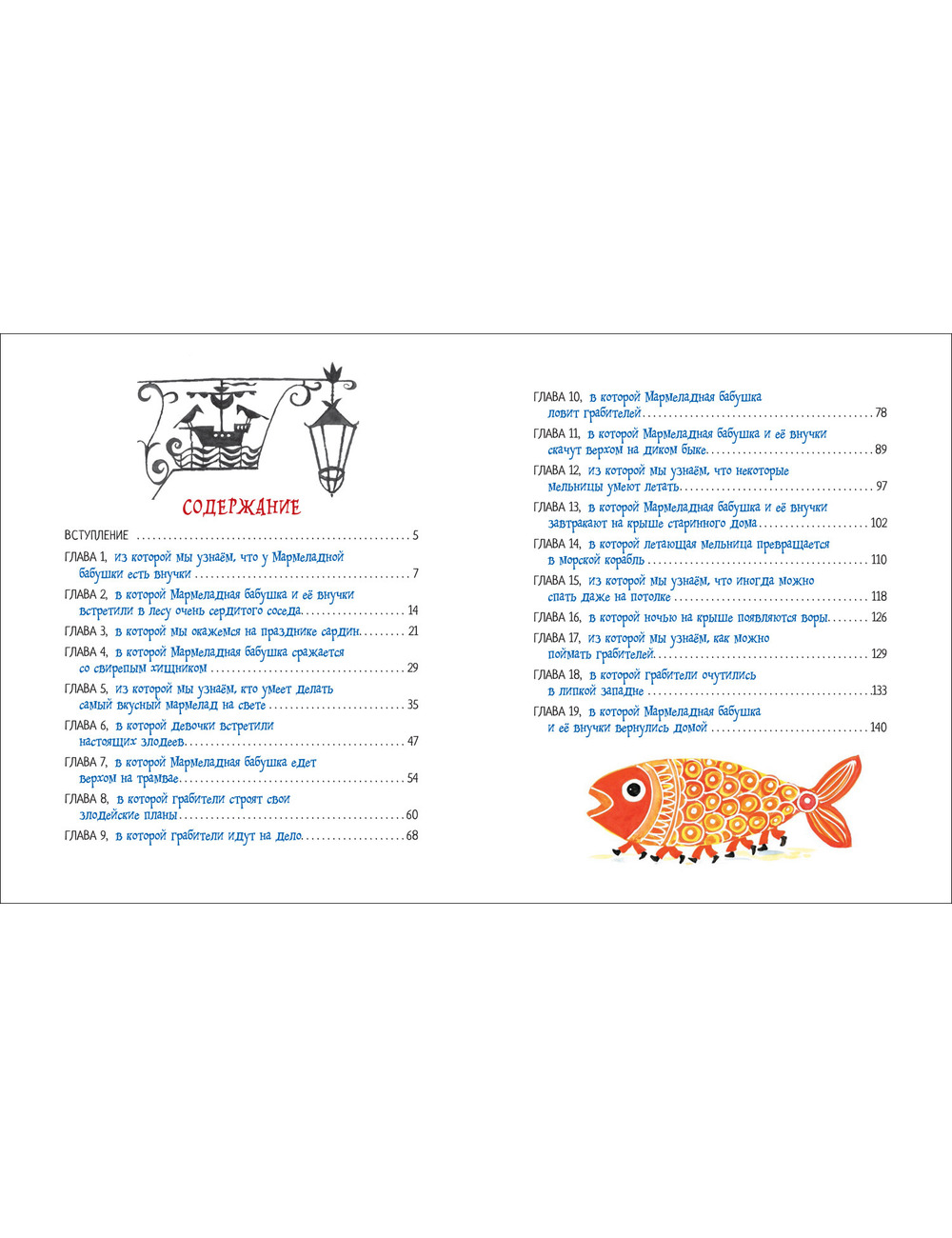 В одном маленьком южном городке живет очень необычная бабушка. Во-первых, она готовит самый вкусный мармелад на свете: за это ее и прозвали Мармеладной бабушкой. А во-вторых, есть у этой бабушки волшебный дар: стоит ей чихнуть — и она тут же переносится куда захочет. И вот однажды Мармеладная бабушка так сильно чихнула, что оказалась в совершенно незнакомом городе вместе с тремя любимыми внучками. Здесь-то и начались их невероятные приключения.