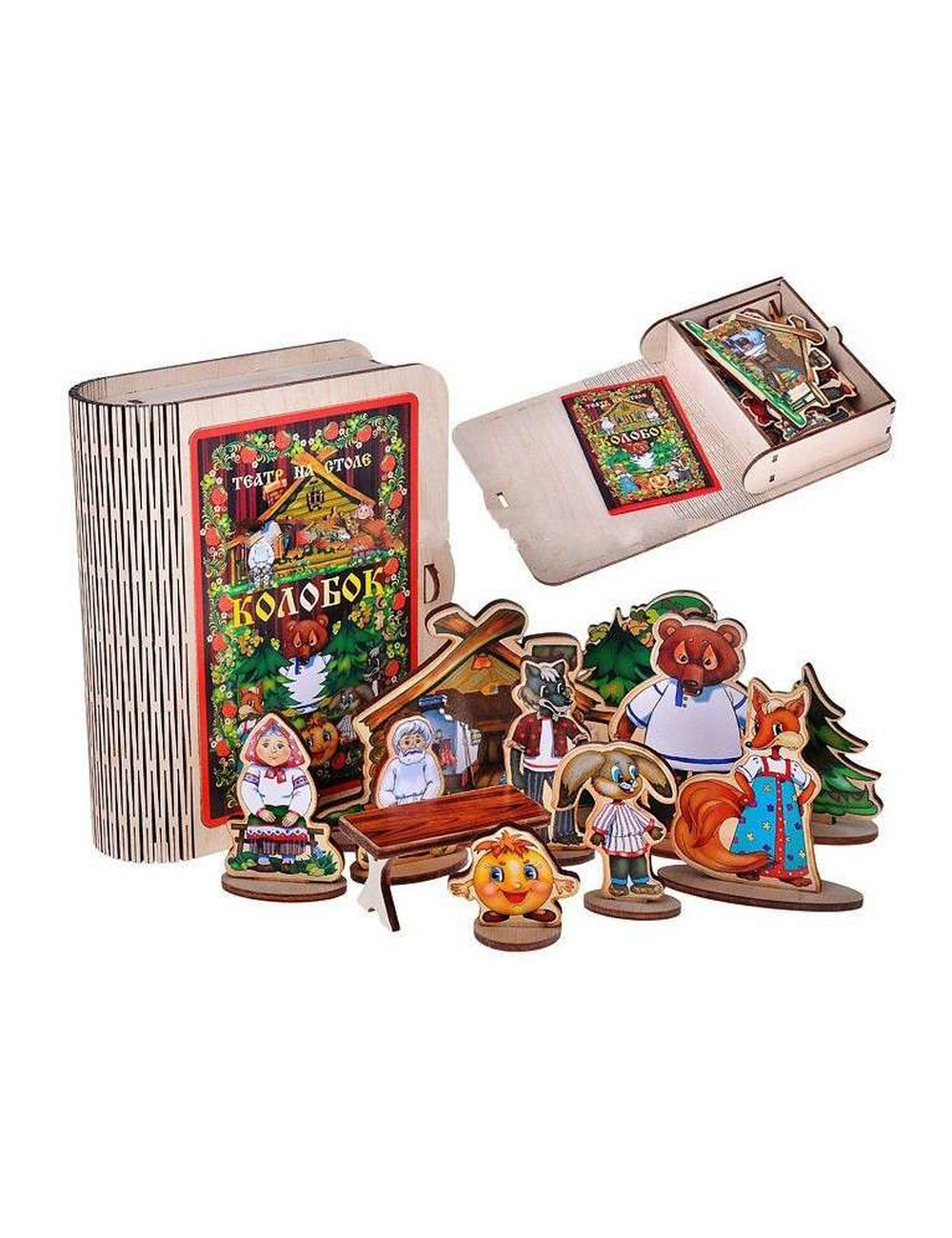 Театр на столе – это развивающий набор, в котором есть всё необходимое для того, чтобы разыграть целую историю. В коробке фанерные фигурки на подставках и декорации для инсценировки. Кроме этого, в наборе есть буклет с текстом сказки. Количество игроков: от 2 до 5. Комплектация: 10 фигурок на подставках, книжка, шкатулка. Материал: дерево (фанера), бумага. Размер упаковки: 50x135x165 мм.
