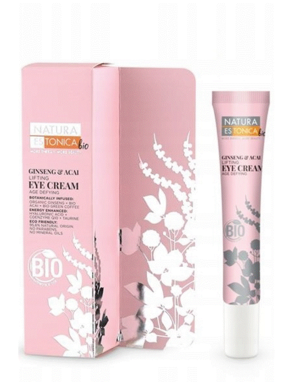 Крем для век NATURA ESTONICA BIO Ginseng & Acai Eye Cream содержит Экстракт женьшеня, Органический экстракт асаи и зеленый кофе экстракт улучшает тонус и эластичность кожи, помогает замедлить старение и обеспечивает эффект лифтинга. Кожа является свежей и отдохнувшей.