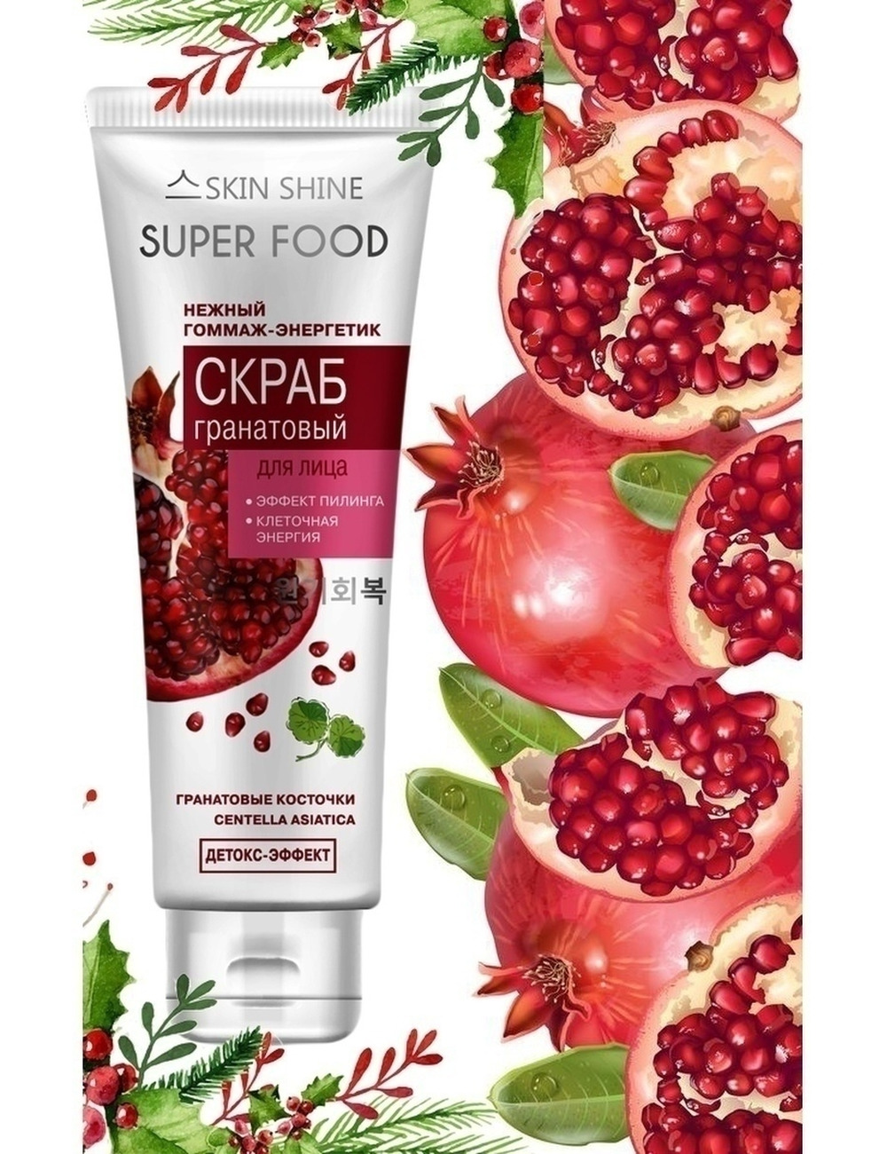Мягкий отшелушивающий гранатовый скраб для лица от Skin Shine объединяет в себе целебные свойства граната и Центеллы, направляя свои действия на обновление и питание кожи. Процесс активного отшелушивания отмерших клеток кожи дополняется ее питанием и эффективным увлажнением, что и достигается посредством воздействия гранатового сока и Центеллы. Мягкие частички пилинга бережно отшелушивают и очищают закупоренные поры. Центелла азиатская это один из немногих природных антиоксидантов, чьё действие научно доказано. Центелла отлично заживляет раны, обладает противовоспалительным и омолаживающим действием. Она стимулирует синтез коллагена I и III типа, которого с возрастом в коже вырабатывается всё меньше. Косметика с центеллой отлично снимает раздражение, делает кожу более упругой, борется со свободными радикалами. Очистка лица, нежный пилинг не повреждают и не травмируют кожу.