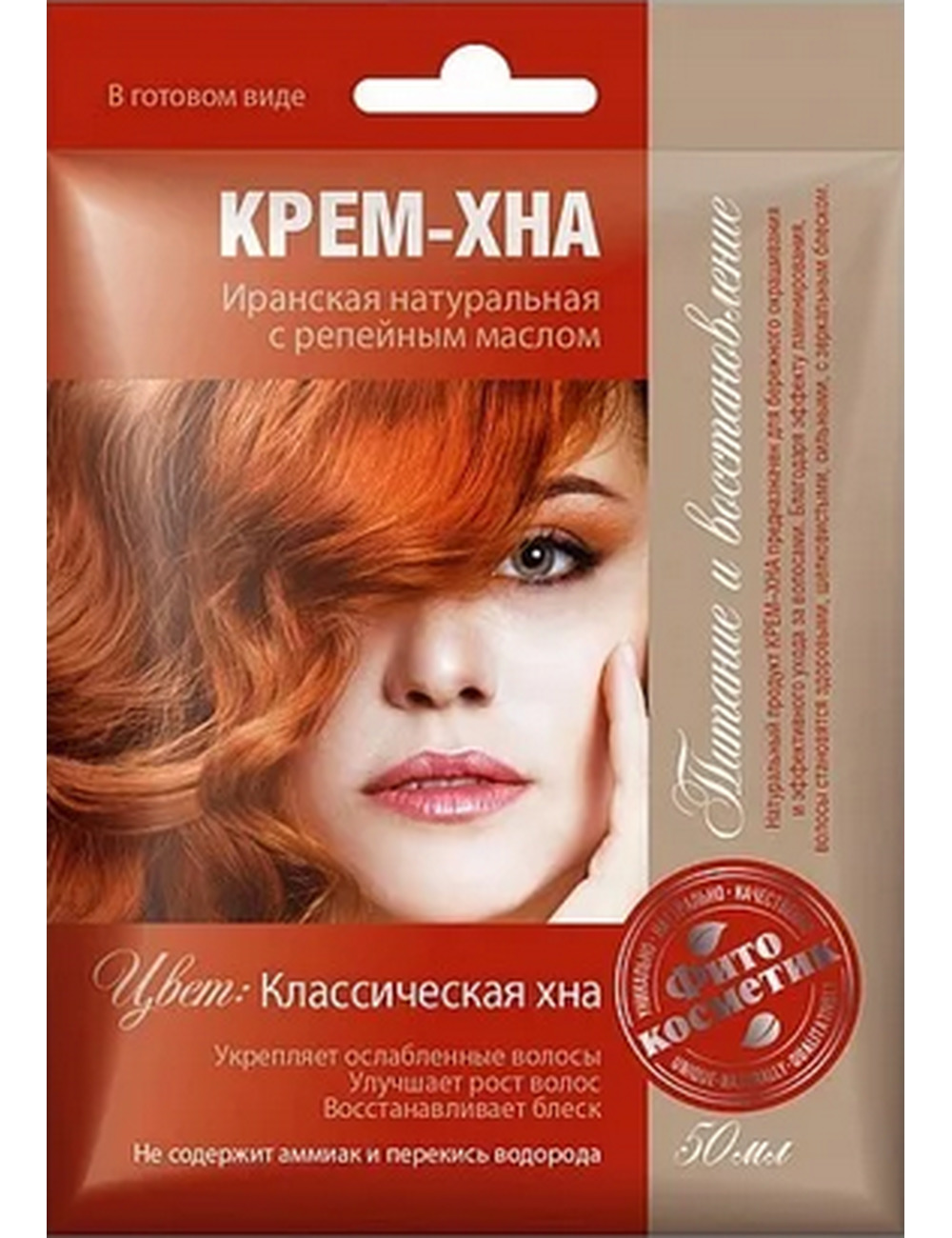 Инновационный прорыв в сфере окрашивания волос. Это натуральная природная краска, обогащенная репейным маслом, дарит волосам глубокий, сияющий цвет «КЛАССИЧЕСКАЯ ХНА», интенсивно питает, увлажняет, восстанавливает и оздоравливает их. Наполняет жизненной силой и энергией от корней до кончиков волос, придает ослепительный блеск и объем. Репейное масло усиливает капиллярное кровообращение в коже головы, питает и укрепляет корни и структуру волос. После использования крем-хны в готовом виде, волосы приобретают красивый насыщенный цвет, становятся более густыми, эластичными, упругими и шелковистыми и послушными.