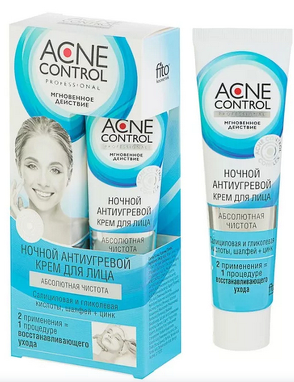 Ночной крем для лица быстро и эффективно устраняет прыщи, угри, уменьшает выделение кожного сала, разглаживает кожу и стирает следы постакне. Инновационный ACNE CONTROL COMPLEXТМ мгновенно избавляет от акне, сужает поры, наполняет клетки кожи ценными витаминами, минералами и микроэлементами, повышает защитные свойства, способствует омоложению кожи. Комбинирование салициловой и гликолевой кислот, входящих в состав крема, помогает добиться качественных результатов при лечении акне. Цинк обладает подсушивающим действием, снимает покраснение и зуд. Натуральный экстракт шалфея дезинфицирует кожу, увлажняет, питает, тонизирует, стимулирует регенерацию клеток кожи, выравнивает структуру и тон лица.