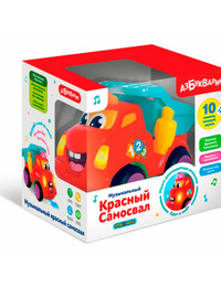 По дороге едет-едет Красный Самосвал! Полный кузов разных грузов он с собою взял! А что везет он и куда – решай сам. Загрузи эту большую машинку, включи ее – и вперед! Красный Самосвал едет сам, объезжает препятствия, его кузов поднимается и опускается, фары светятся! И самое главное – Самосвал едет под музыку и сам поет 3 веселые и познавательные песенки («Песенка Красного самосвала», «Песенка-считалочка», «Песенка про цвета»). Благодаря этим песням малыш легко сможет выучить счет и цвета. Сколько раз просигналила машинка? Би-би-би – раз-два-три! А детали самосвала – разноцветные: красная кабина, голубой кузов, фиолетовые колеса. Играй и учись!