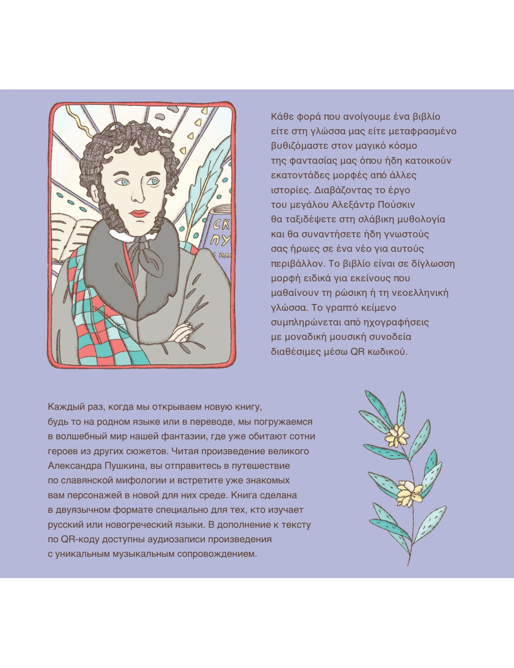 Книга сделана в двуязычном формате специально для тех, кто изучает русский или новогреческий языки. В дополнение к тексту по QR-коду доступны аудиозаписи произведения с уникальным музыкальным сопровождением.