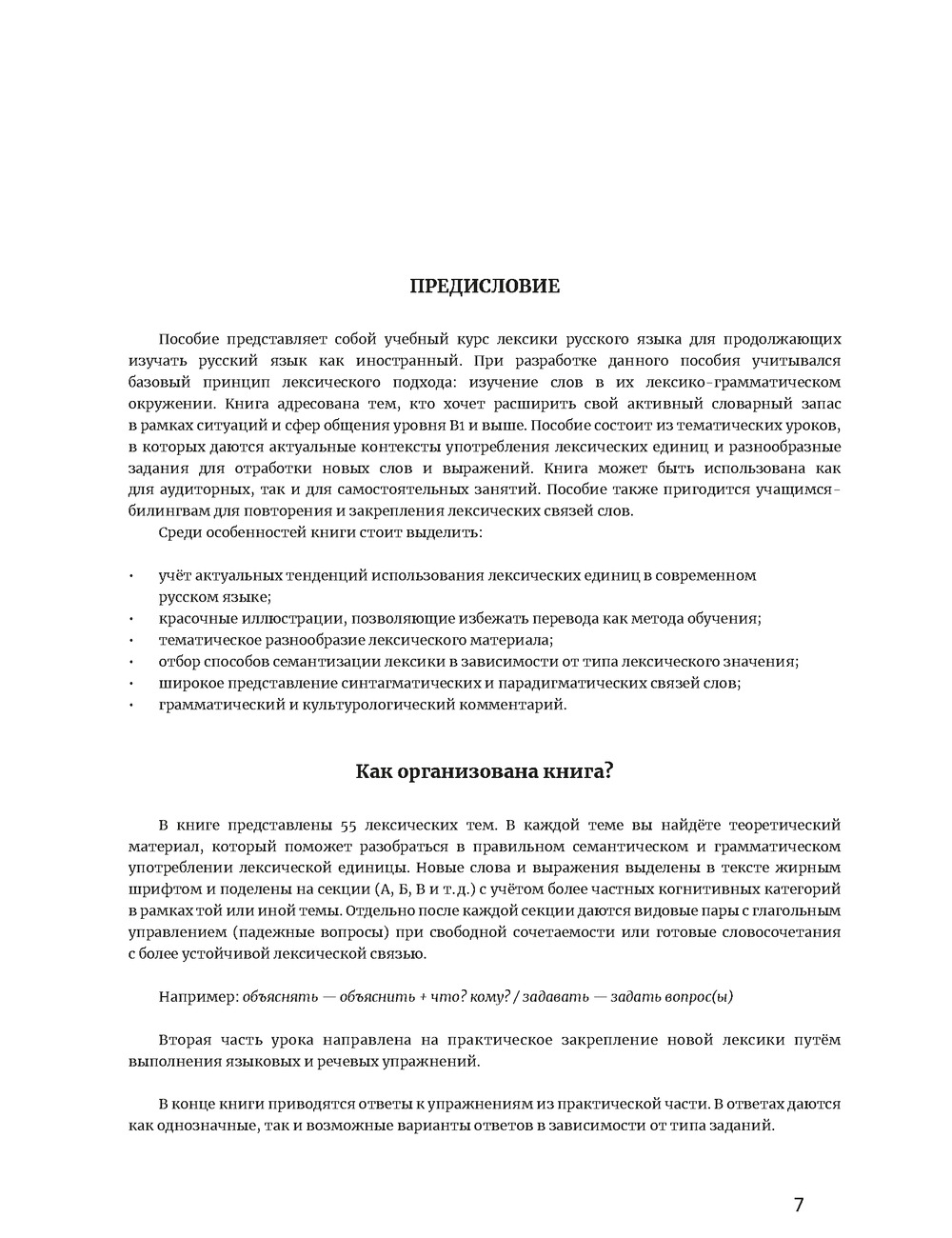 В книге представлен курс лексики русского языка, направленный на расширение активного словарного запаса. Пособие содержит разнообразный практический материал: контексты употребления лексических единиц, иллюстрации, кроссворды, языковые задания, речевые упражнения. Изучаемая лексика распределена по тематическому принципу и включает такие темы, как внешность и характер человека, семейные отношения, транспорт и дорожное движение, средства массовой информации, телевидение, интернет и т. д.