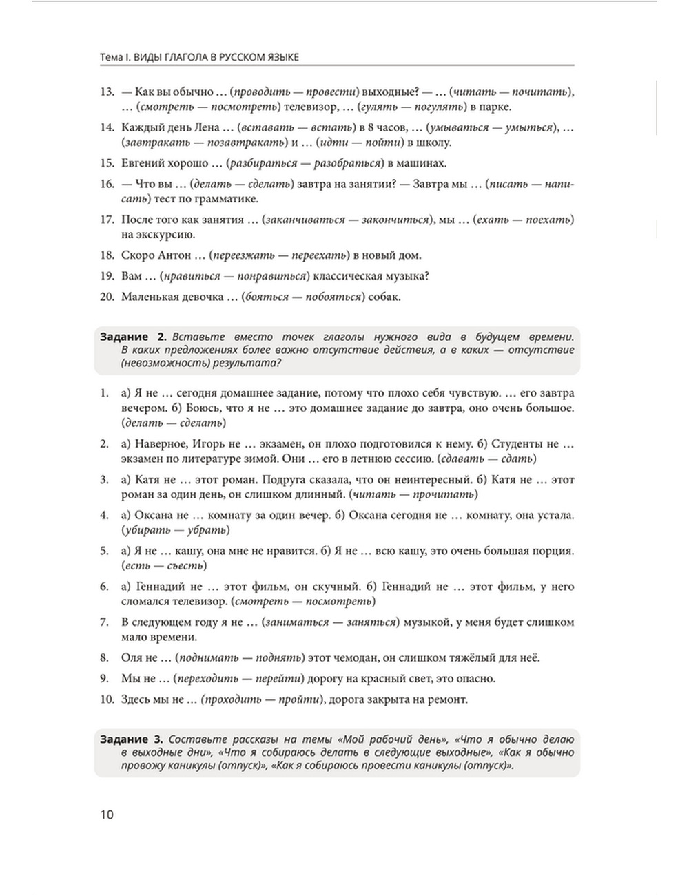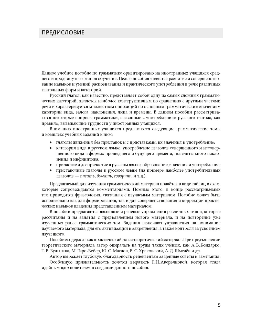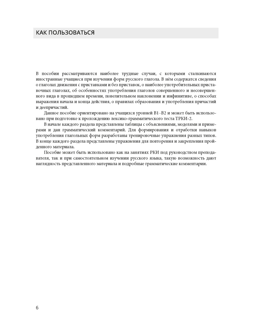 В пособии рассматриваются вопросы грамматики, связанные с употреблением русского глагола, вызывающие трудности у иностранных учащихся. Представлены задания, связанные с глаголами движения без приставок и с приставками, их значениями и употреблением, категорией вида в русском языке, а также с причастиями и деепричастиями.