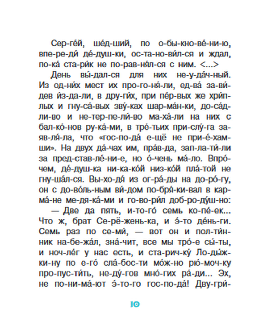 В книгу вошёл рассказ "Белый пудель" классика отечественной литературы Александра Ивановича Куприна. История о пуделе Арто, добром дедушке Мартыне и храбром мальчике Серёже основана на реальных событиях и учит доброте, преданности и умению дружить. Хрестоматийный рассказ немного сокращён, все слова разделены на слоги, проставлены ударения, чтобы малыш смог легко прочитать текст самостоятельно. Кроме того, физкультминутки с пальчиковой гимнастикой помогут активизировать работу мозга, а дополнительные упражнения улучшат технику чтения.