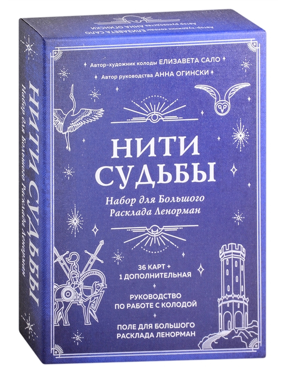В наборе Нити судьбы есть все необходимое, чтобы освоить Оракул Ленорман и даже самостоятельно сделать всеобъемлющий и грандиозный Большой Расклад Ленорман! 36 карт компактного размера, созданных художницей Елизаветой Сало, рассчитаны на объемные и сложные расклады. 12-я карта колоды представлена в двух вариантах Совы и Птицы, что позволяет делать более точные прогнозы. В комплект входит книга-руководство от Анны Огински со значениями всех карт Оракула для различных сфер жизни и описанием БРЛ, а также поле со схемой расклада и пояснениями. Набор Нити судьбы станет настоящим подарком для всех поклонников Оракула Ленорман!