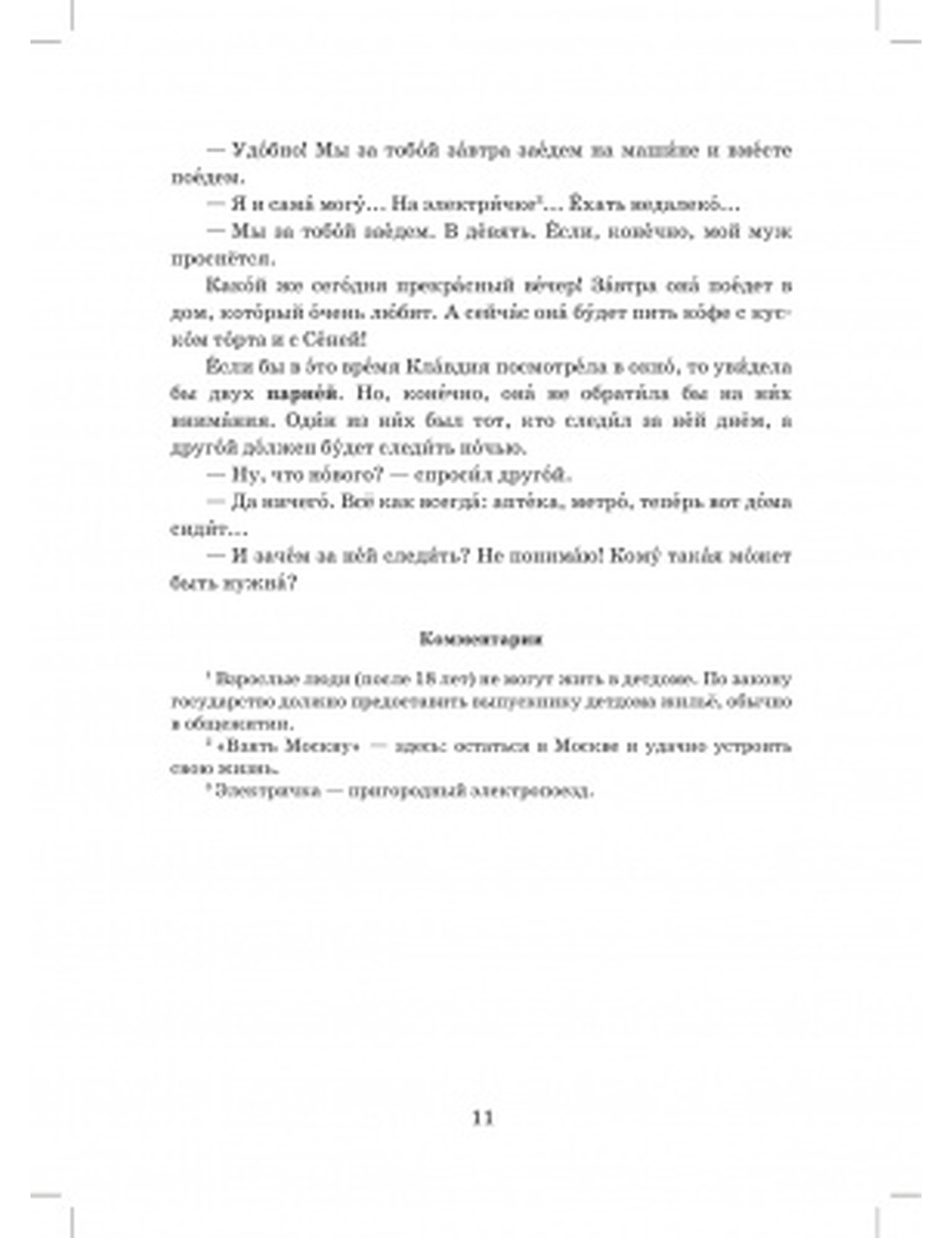 Адаптированый текст детективного романа Татьяны Устиновой. (2300 слов с опорой на лексический минимум уровня В1). В центре произведения — судьба одинокой, бедной и скромной аптекарши Клавдии Ковалевой, выросшей в детском доме. Кто-то следит за ней, чтобы убить. Читателю надо будет не только догадаться кто, но и понять, что и как связывает девушку с талантливым врачом и успешным бизнесменом, который был найден убитым во дворе своего дома.