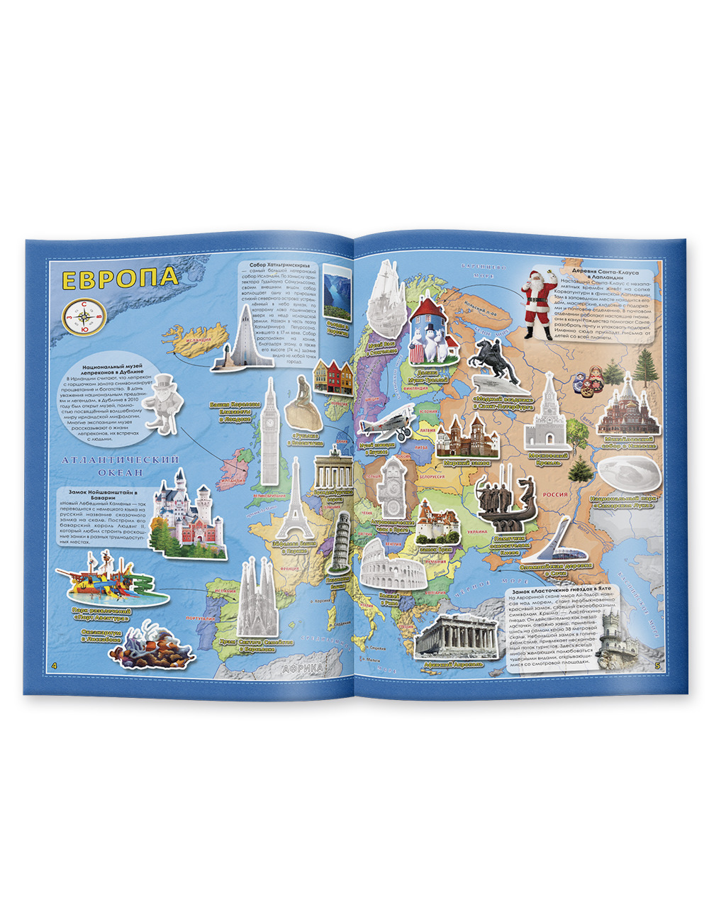 Детский атлас мира с наклейками "Достопримечательности" познакомит Вашего ребенка с красивыми, интересными и увлекательнейшими местами мира. Памятники архитектуры, гигантские статуи и монументы, являющиеся культурным наследием – все это отражено в атласе с наклейками! Красочные иллюстрации и тщательно подобранная информация делают процесс познания творческим. Кроссворд поможет лучше познакомиться с интересными местами мира!