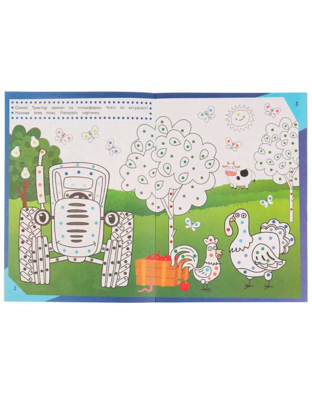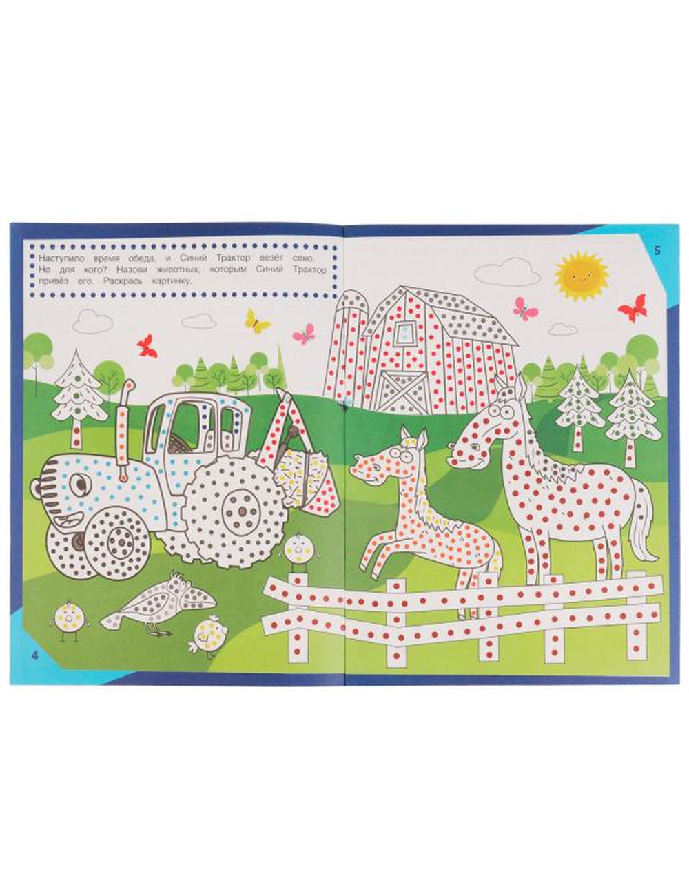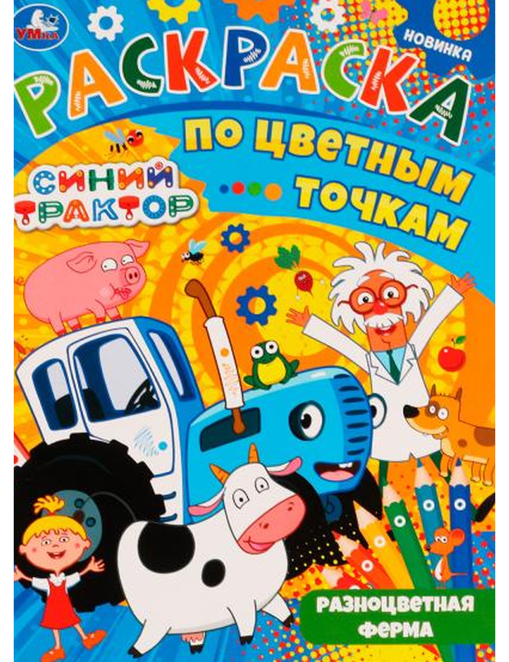Раскраска с цветными точками подскажет и сориентирует ребёнка, в какой цвет нужно раскрашивать картинку. Кроме того, малыш сможет узнать больше об обитателях фермы. Герои известного мультсериала помогут сделать занятия с этой книжкой ещё интереснее.