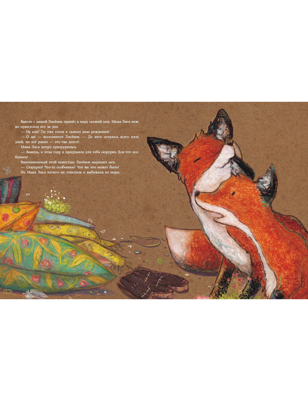 День рождения - праздник особенный! И каждый ребёнок ждёт этот день, ждёт подарков, угощений и весёлых игр. Вот и Лисёнок с нетерпением ожидает свой день рождения. На этот раз Мама Лиса придумала для сына что-то необычное. Малышу так любопытно, что он не может удержаться и вместе со своими друзьями гадает, что же это будет. Звери делают самые невероятные предположения! Прочитав эту книгу, юные читатели узнают, какой всё-таки подарок получит Лисёнок. Ульрике Мотшиуниг - родилась в 1965 году, в Австрии. Работала в банковской сфере, но после рождения двух дочерей обратилась к литературному творчеству, начала писать сказки. Первая книга автора вышла в 2010 году. В 2011 году книга Ульрике Мотшиуниг «Как Лисёнок счастье искал» была удостоена австрийской премии «Книга-фаворит». В сентябре 2013 года эта же книга получила премию Львовской книжной ярмарки. Книги автора переведены на пять языков. Полюбившаяся европейским читателям серия книг про Лисёнка в России публикуется впервые. Флоренс Дайё – родилась в Париже, училась во Франции и Великобритании. Живёт в Германии с 2001 года, до этого времени жила и работала в Шотландии, Чили и Мексике. Воспитывает трёх дочерей. Член ассоциации немецких иллюстраторов. Принимает участие в международных выставках.