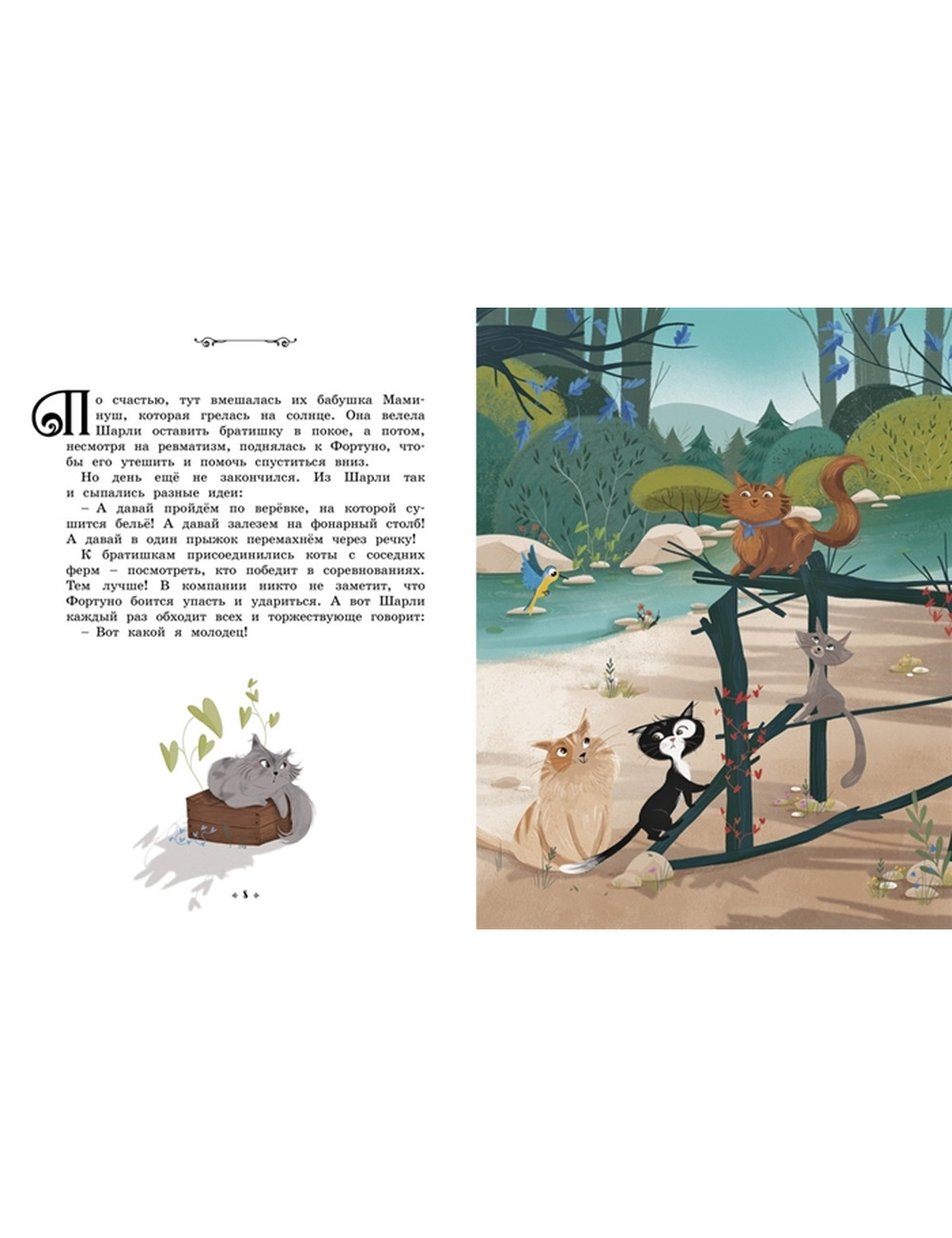 Котёнок Фортуно очень несчастен. Он боится всего на свете! Как ему стать таким же храбрым, как его брат? К счастью, мудрая сова Минерва всегда рядом: она даст совет и поможет котёнку обрести уверенность в себе. Потому что истинная храбрость заключается в том, чтобы преодолевать свои страхи. И Фортуно на это вполне способен!