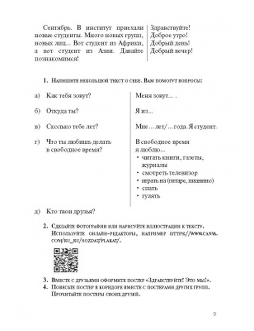 Для этого в пособие включены различные коммуникативные задания в форме постеров, творческих проектов, презентаций и т.п., позволяющие в процессе их подготовки и представления максимально продуктивно развивать устную речь на русском языке.