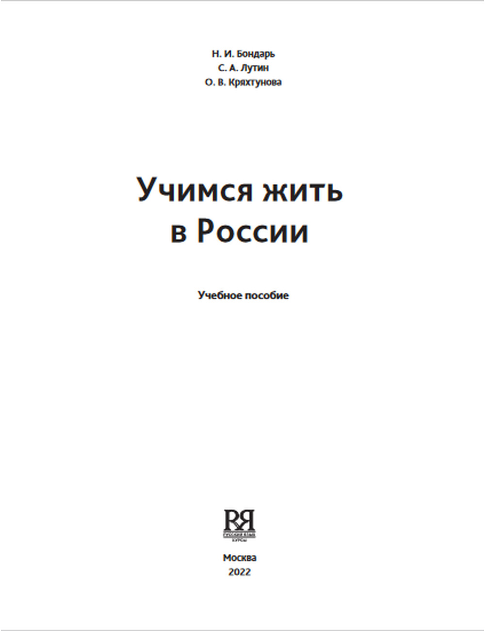 Цель пособия «Учимся жить в России» — помочь иностранцам, собирающимся или уже приехавшим в Россию, овладеть необходимыми навыками коммуникации в реальных жизненных ситуациях — в университете, в транспорте, на улице, на почте, в банке, на отдыхе и т. п. Отличительной особенностью предлагаемого в книге материала является его практическая направленность и учёт современных российских реалий.
