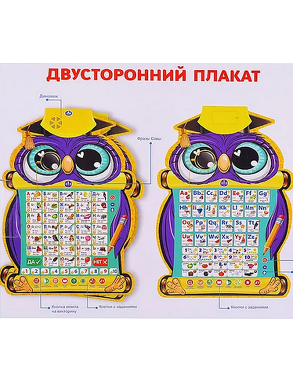 Обучающий двусторонний плакат «Мудрая сова» ТМ «Умка» - многофункциональный помощник малышу в познании окружающего мира: