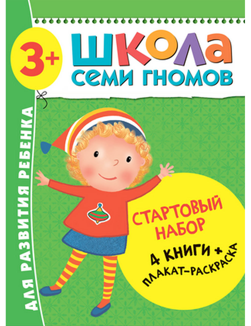Школа семи гномов. Стартовый набор 3+Стартовый набор Школа семи гномов для детей от трех до четырех лет идеальное решение для тех, кто находится в поисках развивающих пособий для своего ребенка он позволяет протестировать комплексную систему развития Школа семи гномов и легко перейти к дальнейшему обучению. В Стартовый набор входят 4 книжки, которые специально подобраны для быстрого и легкого старта развивающих занятий по системе. Они актуальны в течение всего года жизни. В помощь взрослому в книгах есть родительские странички, которые содержат удобные руководства к занятиям. Также внутри набора ждет приятный бонус большой плакат (70Х50 см) для раскрашивания по символам, разработанный в соответствии с возрастными возможностями ребенка.