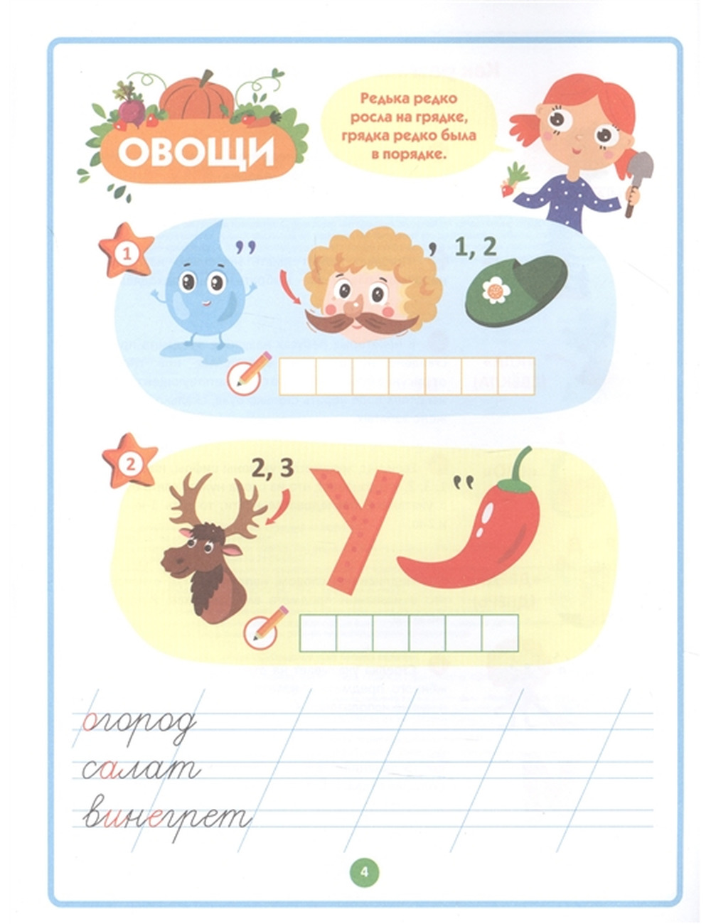 Ваш ребёнок научится писать грамотно. Он быстро выучит 200 словарных слов, при письме которых дети так часто ошибаются. Юный школьник не заметит, как запомнит их, разгадывая ребусы, собирая слова из букв и слогов, решая кроссворды. Он потренируется в написании сложных слов на строчках-прописях. Задания сформируют в сознании ребёнка устойчивый графический образ слов. Он непременно «всплывёт» в памяти во время диктанта и не позволит допустить ошибку.