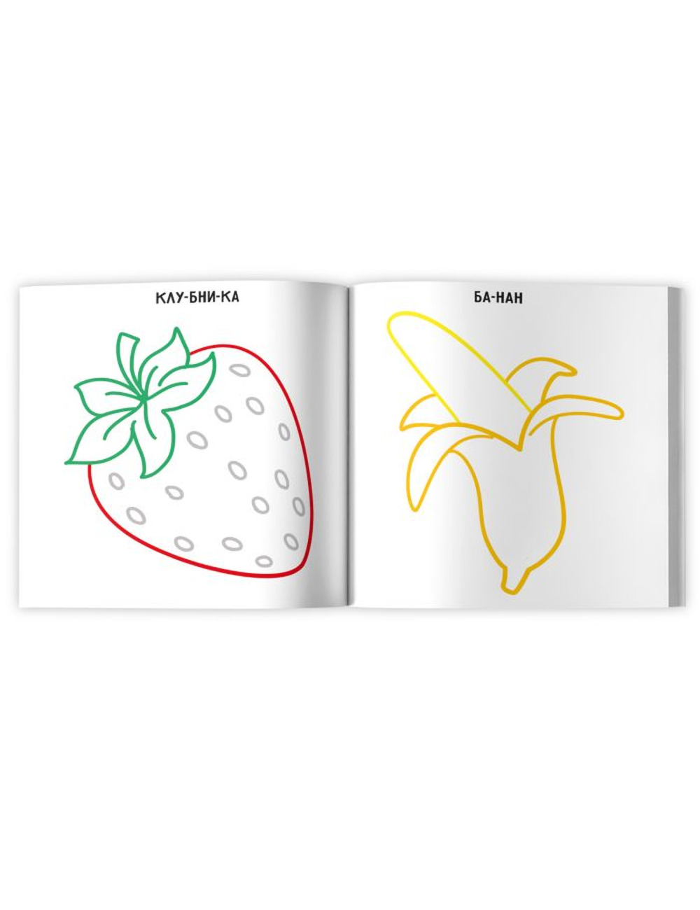 Раскраска с цветным контуром ОВОЩИ, ФРУКТЫ, ЯГОДЫ