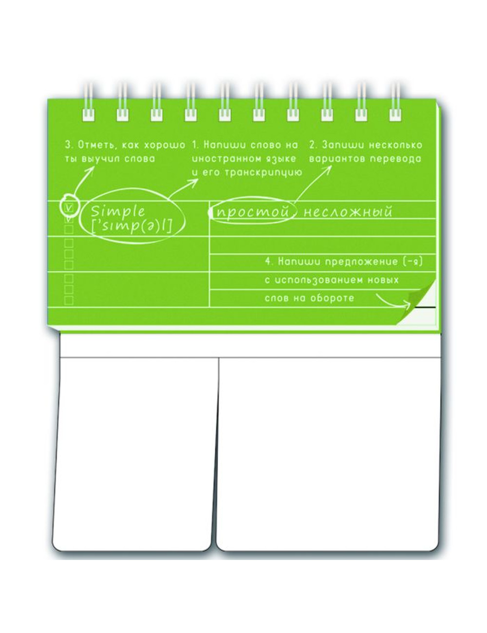 Записная книжка для записи и изучения иностранных слов.Формат: 120х70 мм.Количество листов: 72.Внутренний блок: белый офсет 80 г/м2.Крепление: евроспираль.Материал обложки: мелованный картон.