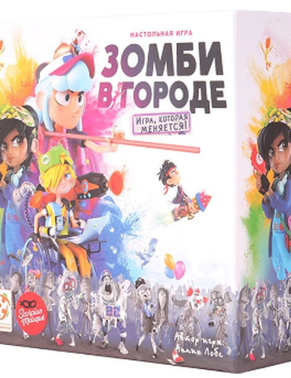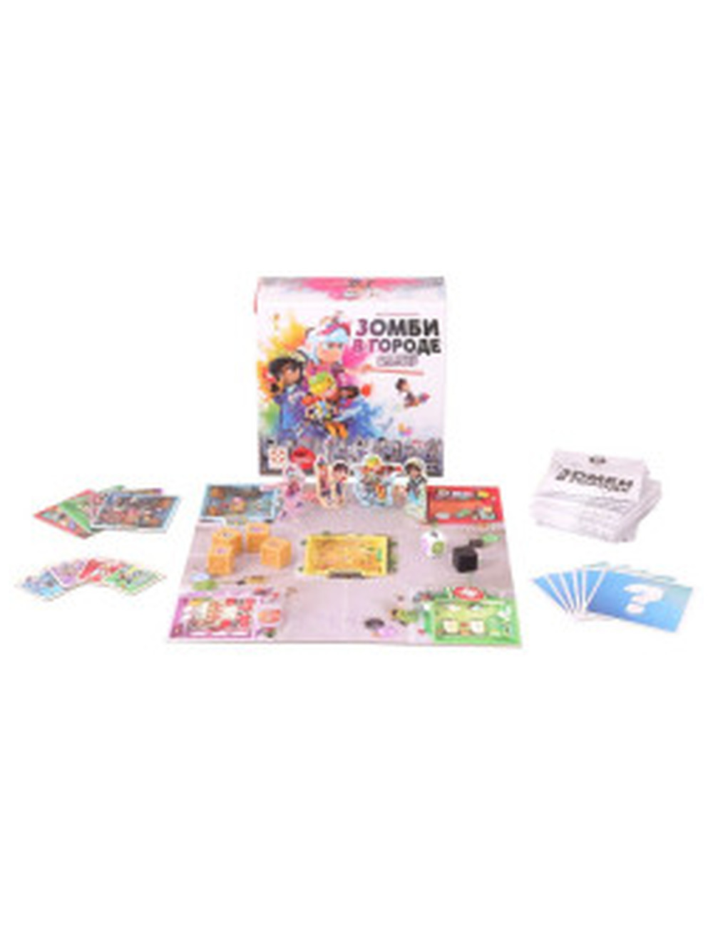 Зомби в городе - это продолжение настольной игры Зомби в школе. Надо отметить, что эти две игры абсолютно независимы и каждая из них хороша как сама по себе, так и в сочетании друг с другом. В этой динамичной и быстро меняющейся кооперативной игре все игроки объединены одной целью: спасти человечество от превращения в зомби. Вы либо проиграете, не успев принести четыре ингредиента для антидота в школу до того, как зомби захватят четыре здания в городе, либо одержите победу, сумев создать антидот. Зомби в городе - это игра, которая меняется и становится всё более яркой и интересной от партии к партии! В состав настольной игры Зомби в городе (Zombie Teenz) входят: 1 игровое поле с планом города; 1 белый кубик; 1 полностью чёрный кубик; 4 фишки героев; 4 ящика с ингредиентами; 4 жетона полчищ зомби; 4 карты захваченных зданий; 6 карт событий; 11 пластиковых подставок для фишек; 10 запечатанных конвертов; 4 конверта достижений; 1 лист со стикерами; 1 буклет с правилами игры.