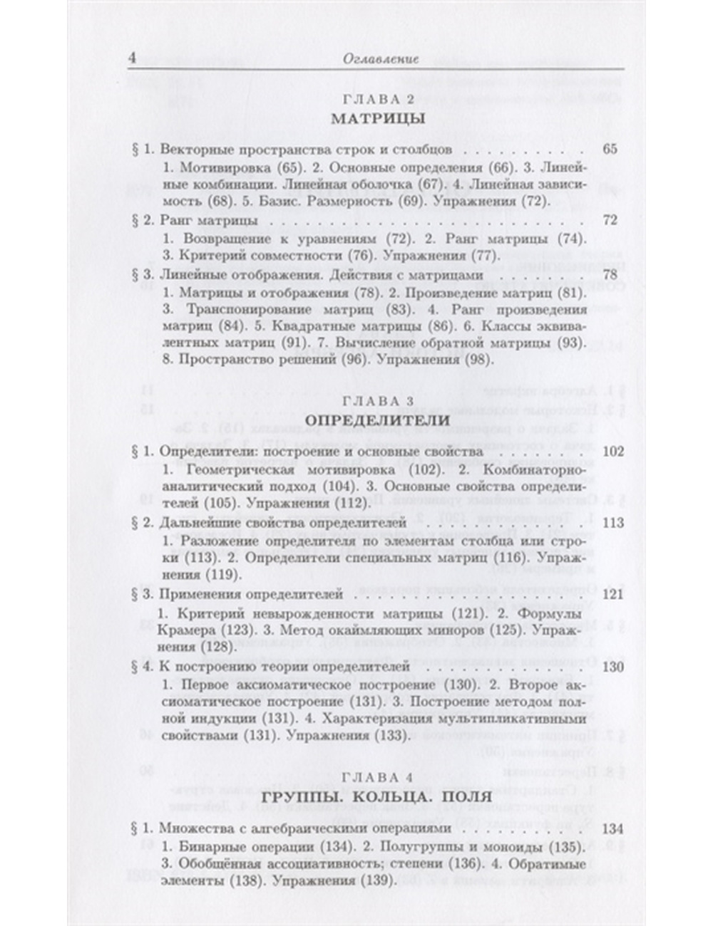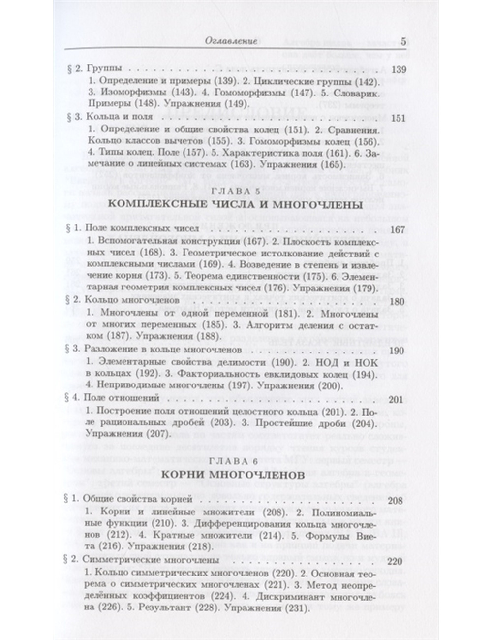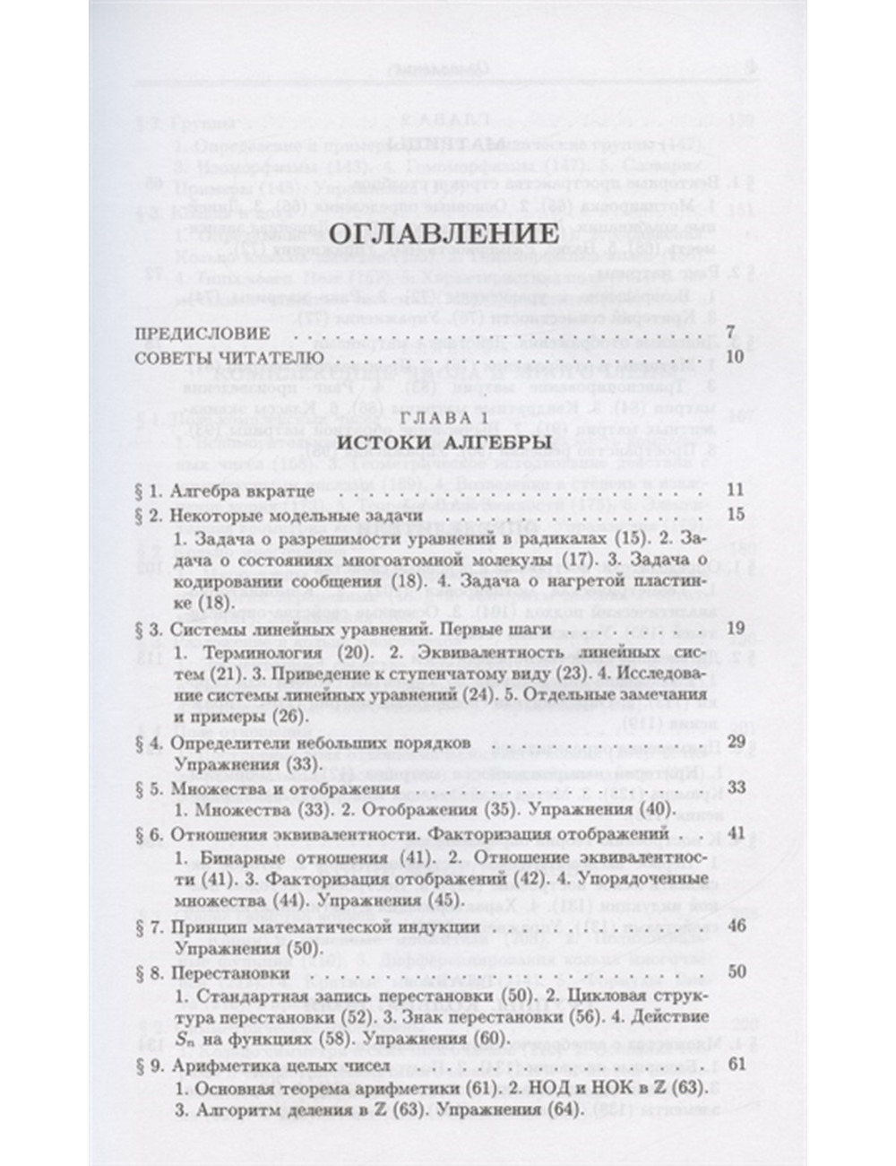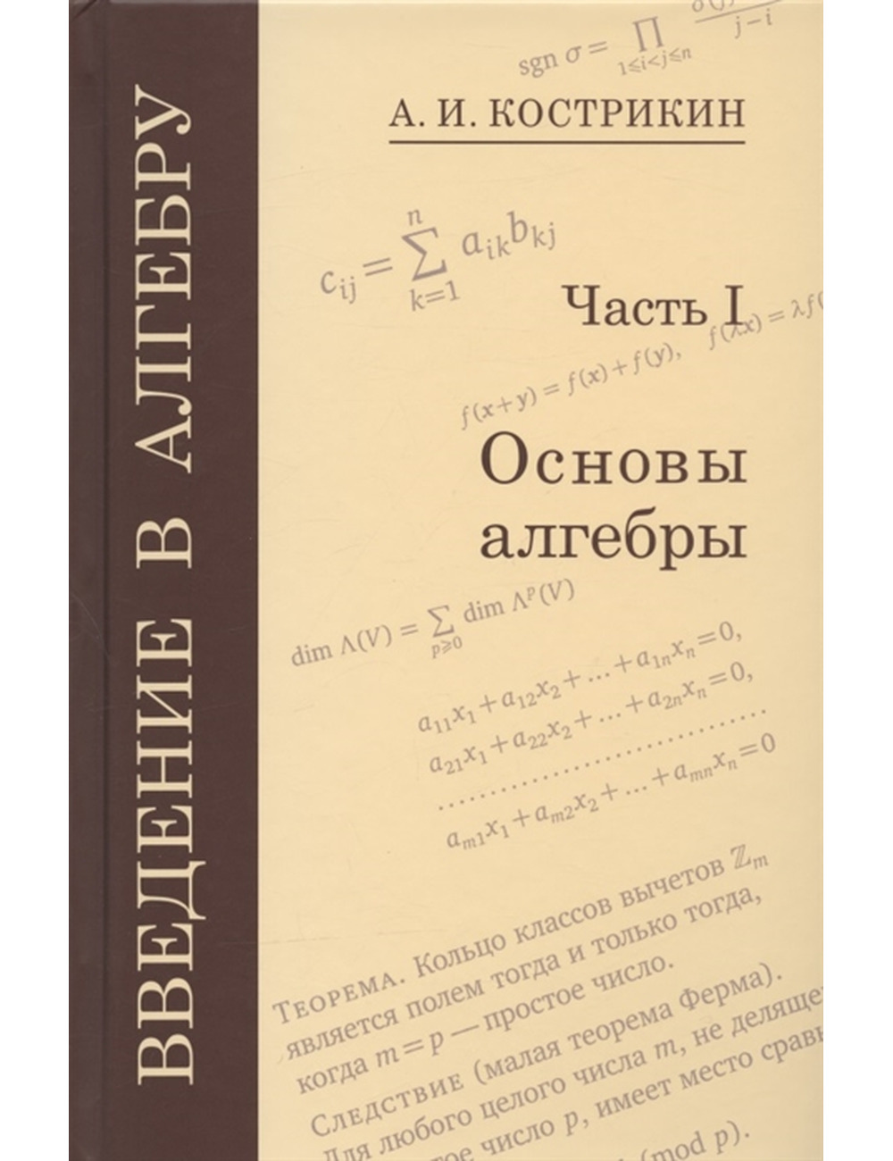 Рассмотрены системы линейных уравнений, элементарная теория матриц, теория определителей, простейшие свойства групп, колец и полей, комплексные числа и корни многочленов. Помещено большое число упражнений различной степени трудности.Для студентов младших курсов университетов и вузов с повышенными тербованиями по математике.