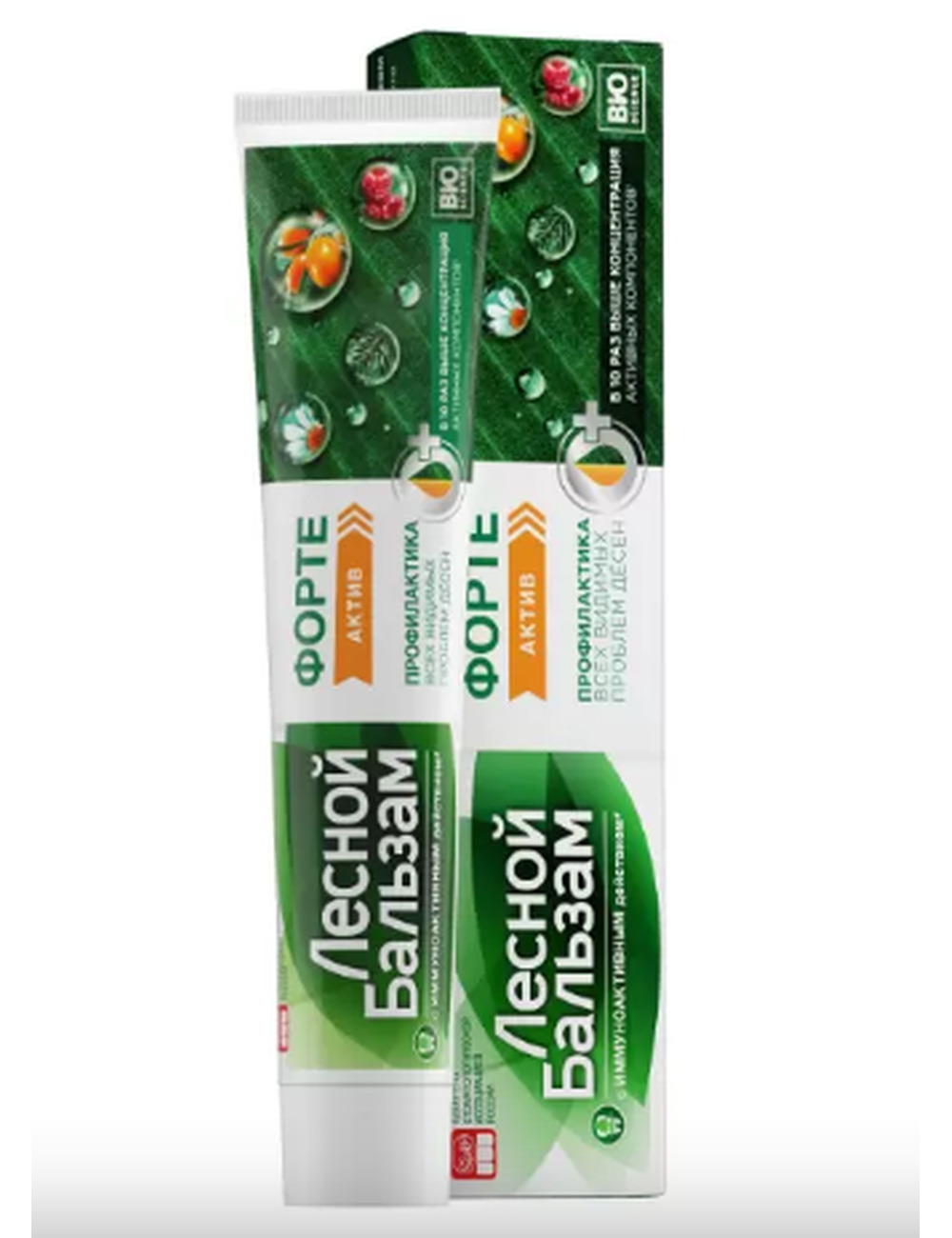 Новая зубная паста Лесной бальзам «Форте Актив» усилена маслом чайного дерева и уже с первого дня активирует иммунитет полости рта, повышая естественную защиту зубов и десен от вредных бактерий.
