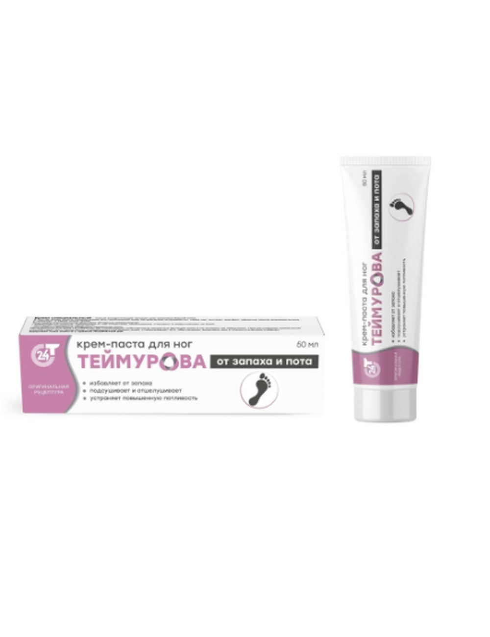 Крем-паста ТЕЙМУРОВА для ног от запаха и пота предназначена для устранения запаха и избыточной потливости ног.